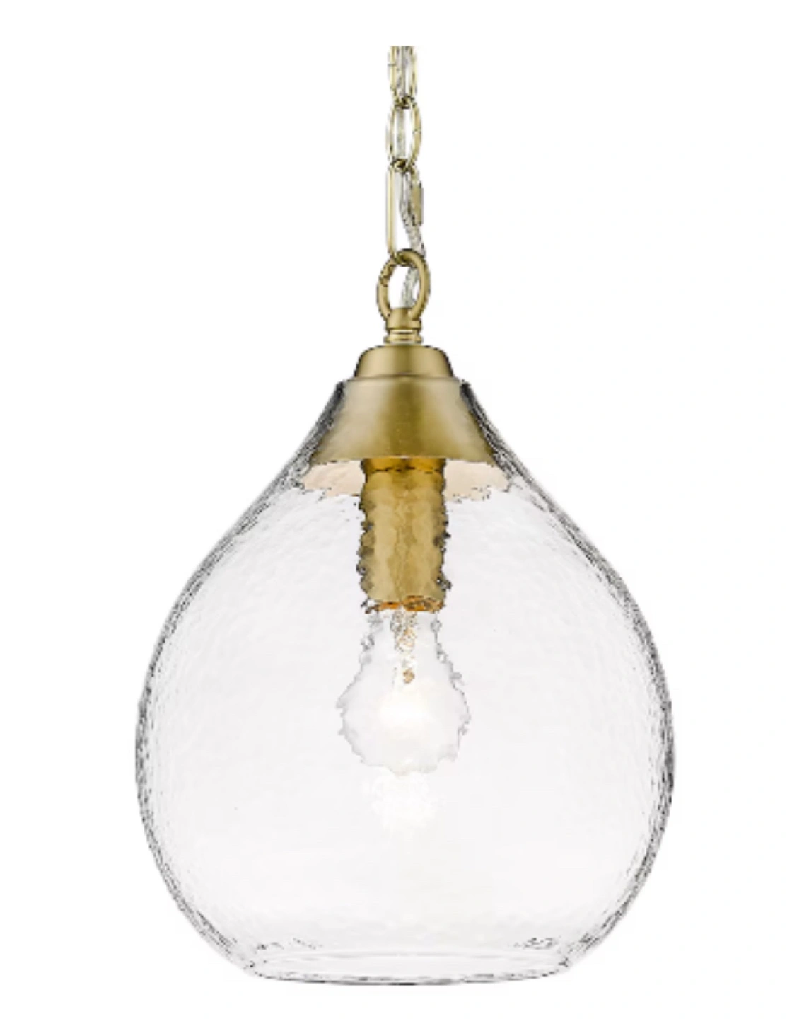 Selling 3 Golden Lighting Ariella 1-Light Pendant in a brushed champagne bronze with hammered clear glass finish Fixture Colour/Finish: Gold Fixture Shape: Teardrop, Bell Shade Material: Glass Lighting Features include: - Dimmable - Hardware Included - Hanging - Adjustable Length - Adjustable Height - Sloped Ceiling Compatible - Shaded Originally bought for $199 Each