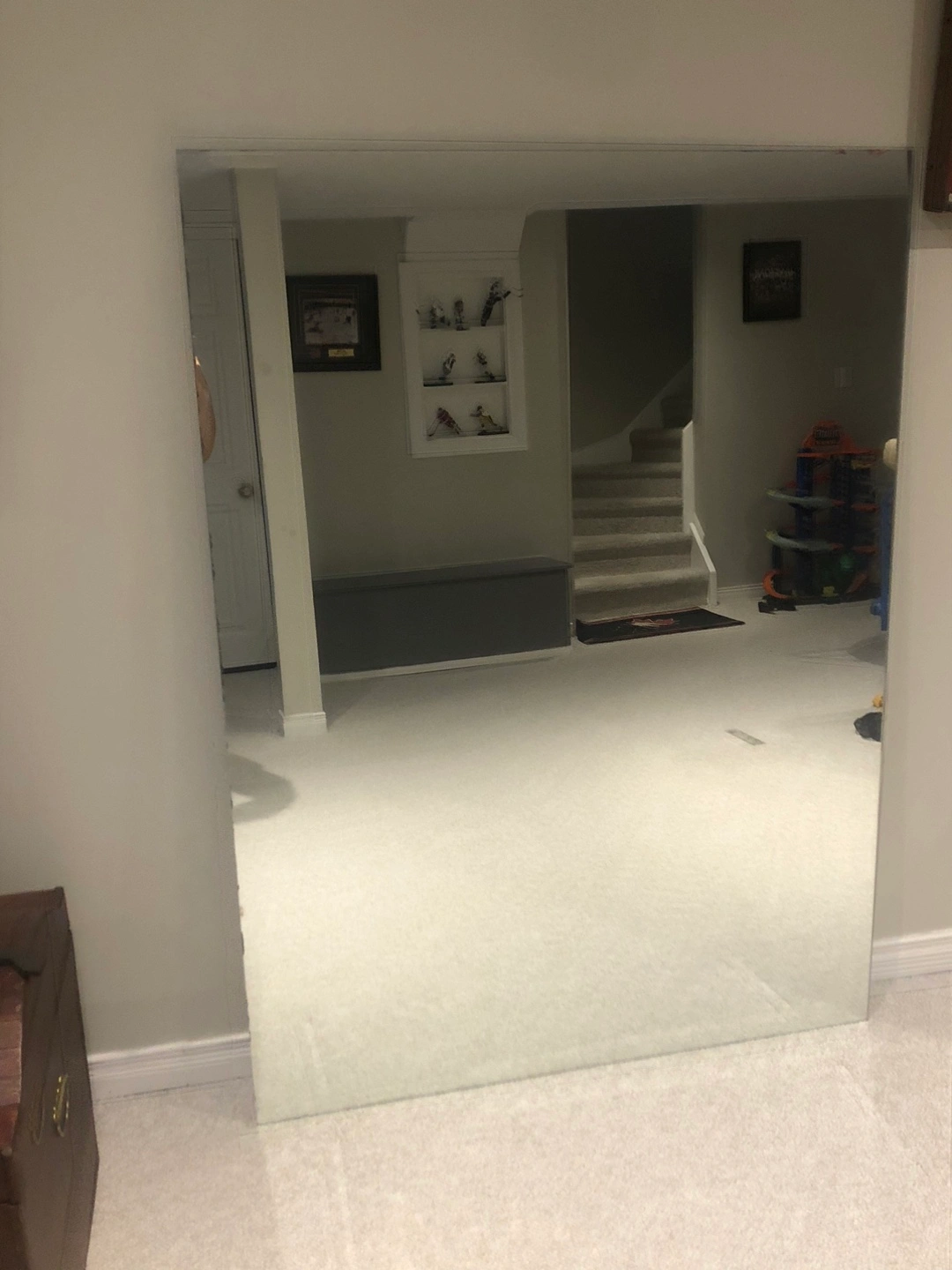 Selling a large wall mirror. It's in great condition and ready to brighten up your space! Perfect for a bathroom, bedroom, or living area