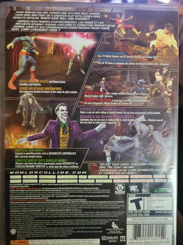 Selling Mortal Kombat vs DC Universe for the Xbox 360! It's a Platinum Hits edition and comes with the instruction manual. A great fighting game that combines characters from both universes. Disc works and in excellent condition.