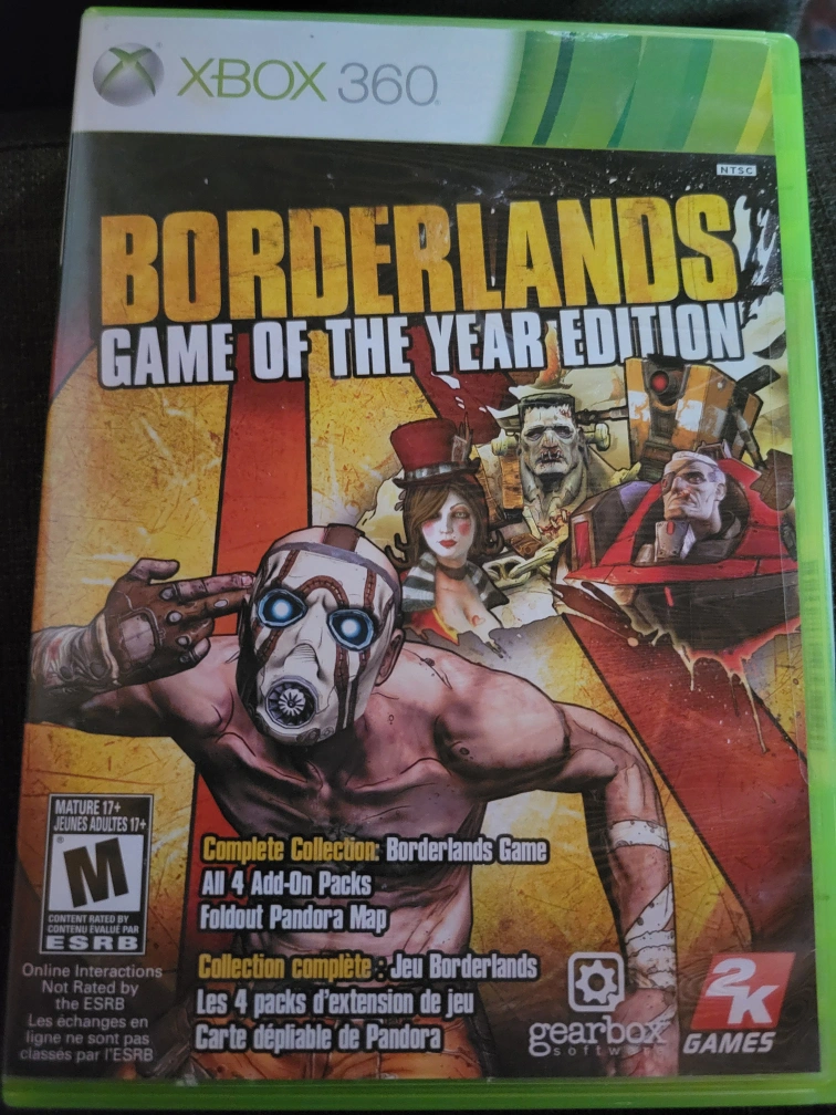 Selling Borderlands Game of the Year Edition for the Xbox 360! Comes complete with the game disc and add-ons disc. A great addition to any collection!
