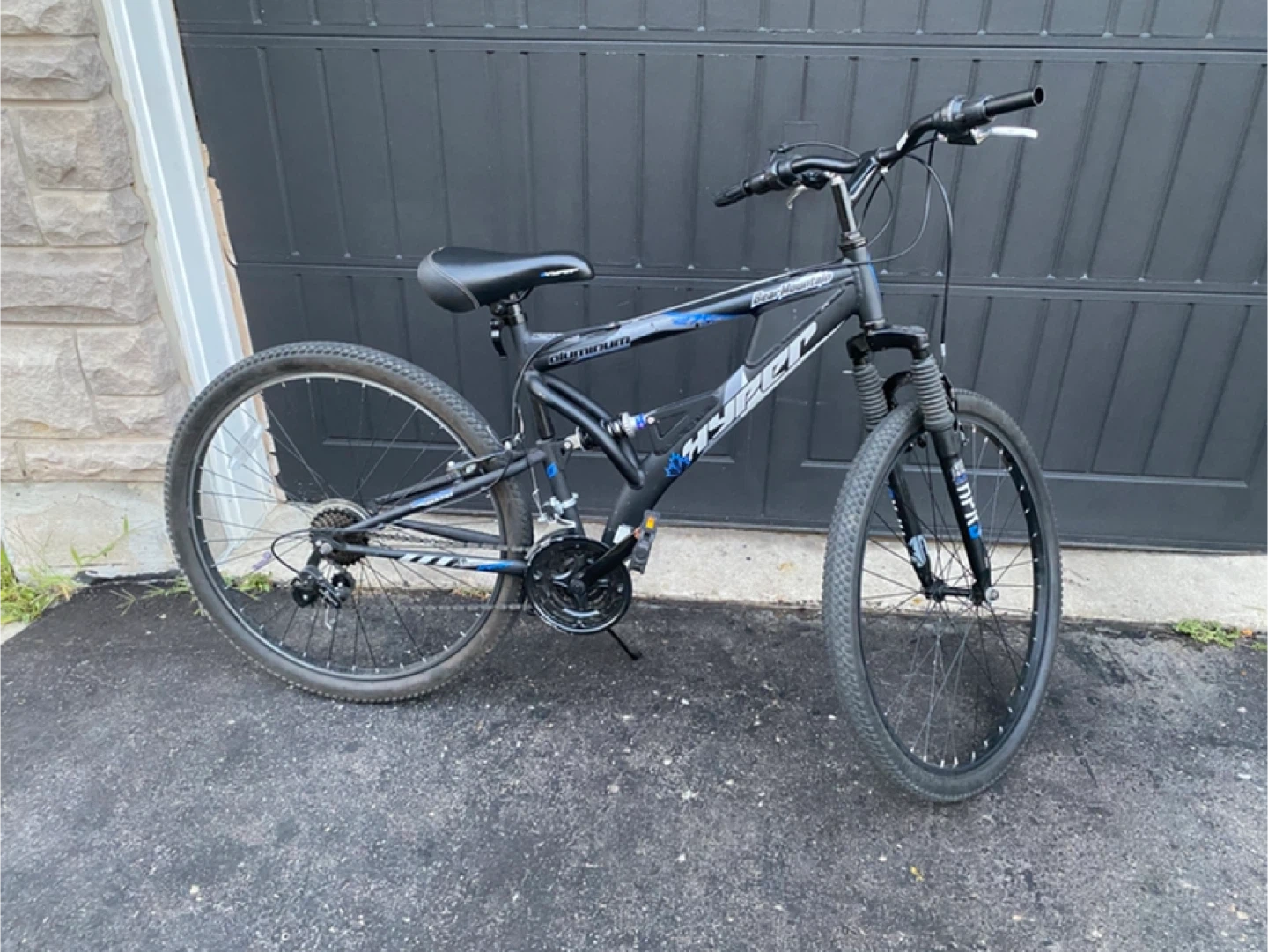 Selling a Hyper mountain bike in good condition. It's ready for some off-road adventures or just cruising around the neighbourhood. It has front suspension and a comfortable seat.