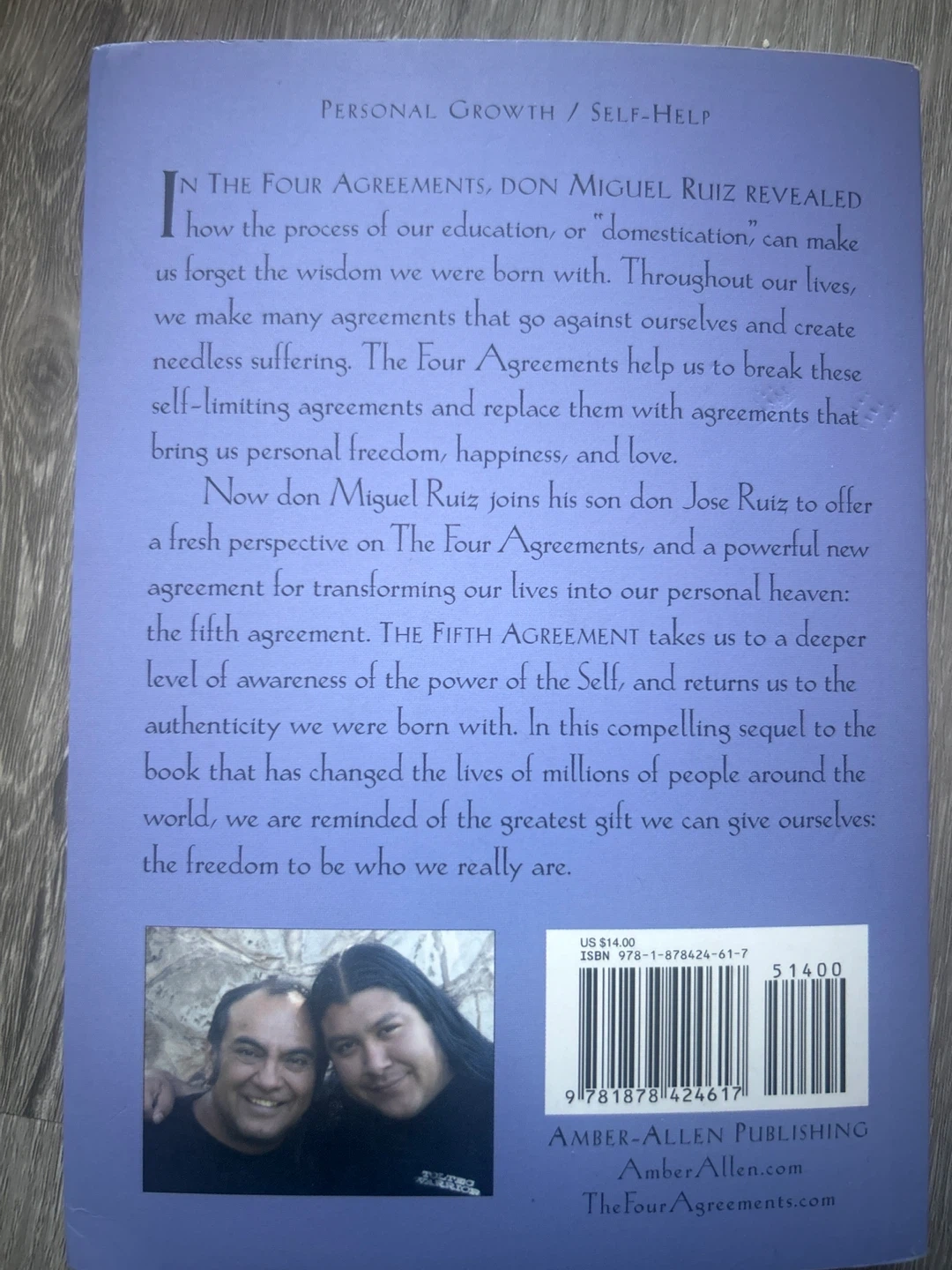 Selling 'The Fifth Agreement: A Practical Guide to Self-Mastery' by Don Miguel Ruiz and Don Jose Ruiz with Janet Mills It is a Toltec Wisdom Book and a sequel to The Four Agreements, helping to bring personal freedom, happiness, and love