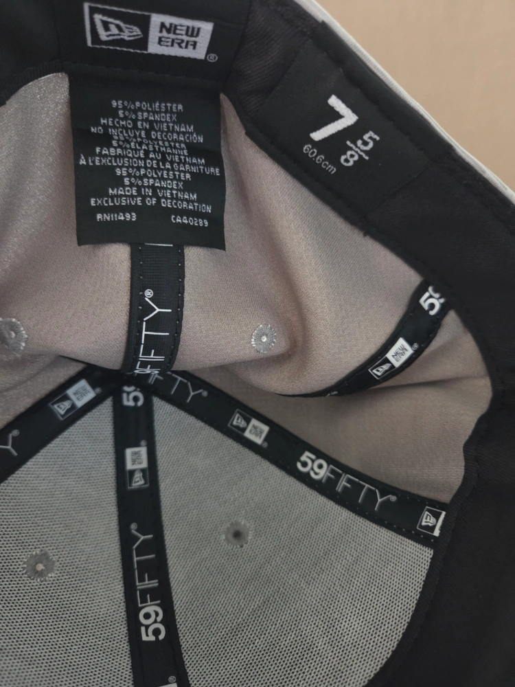 Selling a New Era Toronto Blue Jays 59FIFTY Low Profile hat in size 7 5/8. It features a contoured crown and a curved visor. The hat is made of 95% polyester and 5% spandex.