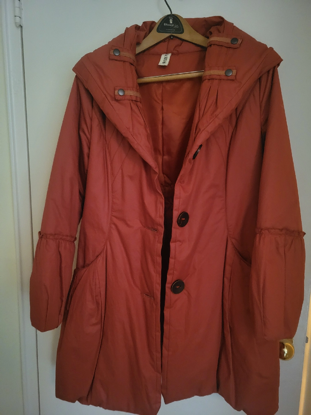 Here's a lovely Manzio puffer coat in a unique orange colour! It's a size large (fits medium) and in great condition. Perfect for staying warm and stylish during the colder months!