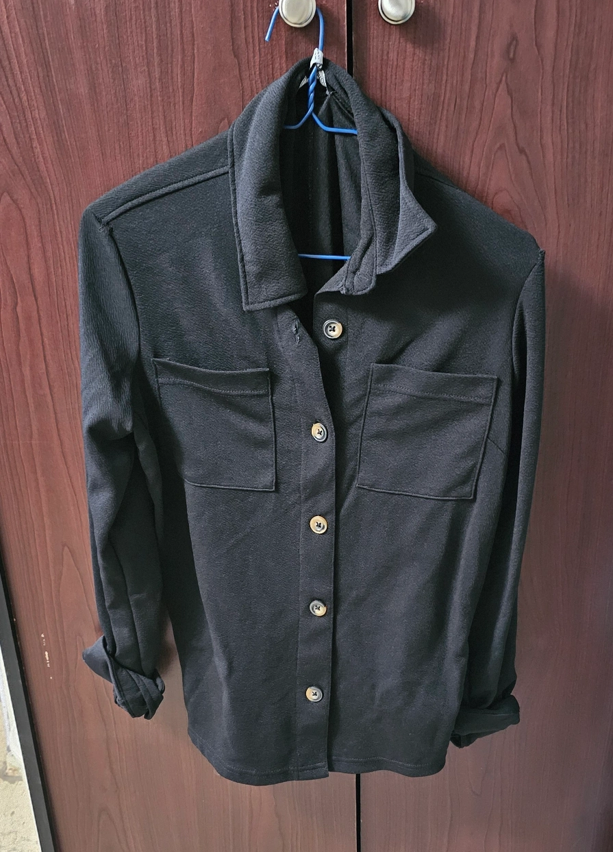 Selling a black button-down shacket. It's a size small and in great condition! Perfect for layering or wearing on its own
