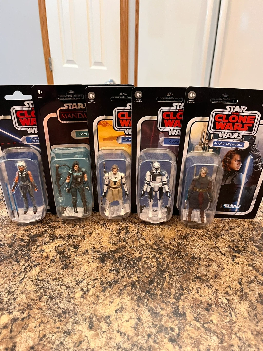 Selling a collection of Star Wars action figures from The Clone Wars and The Mandalorian series! All figures are brand new and still in their original packaging. These are Kenner versions, making them a great addition to any Star Wars collection. Each figure comes with its accessories as seen in the photos. Available characters include Obi-Wan Kenobi, Captain Rex, Anakin Skywalker, Cara Dune, Ahsoka Tano and Mandalorian.