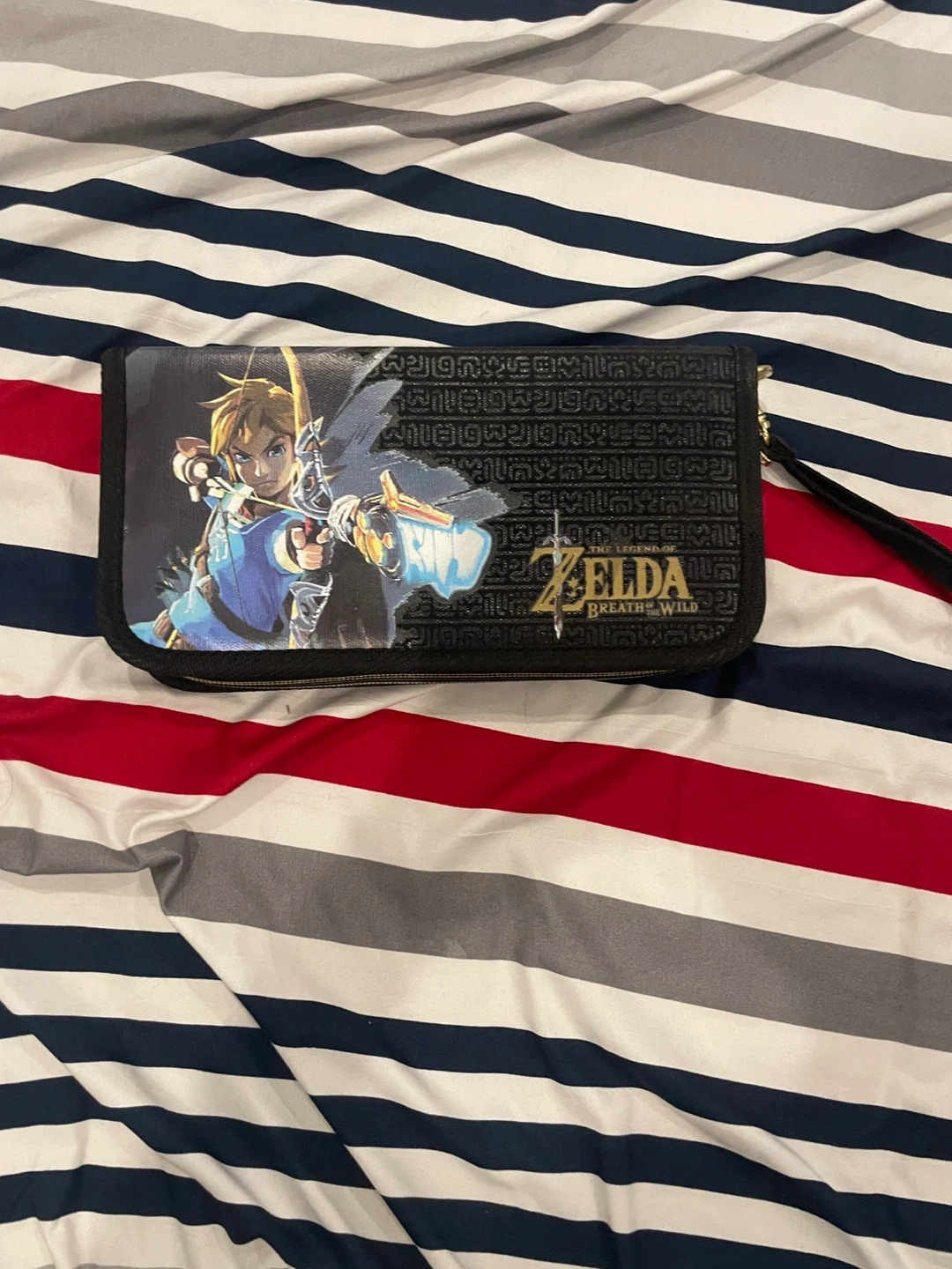 Selling a Zelda: Breath of the Wild Nintendo pouch! It's in great condition and perfect for carrying your Switch or other small items. The pouch features a detailed design from the game and has a zippered closure to keep your items secure