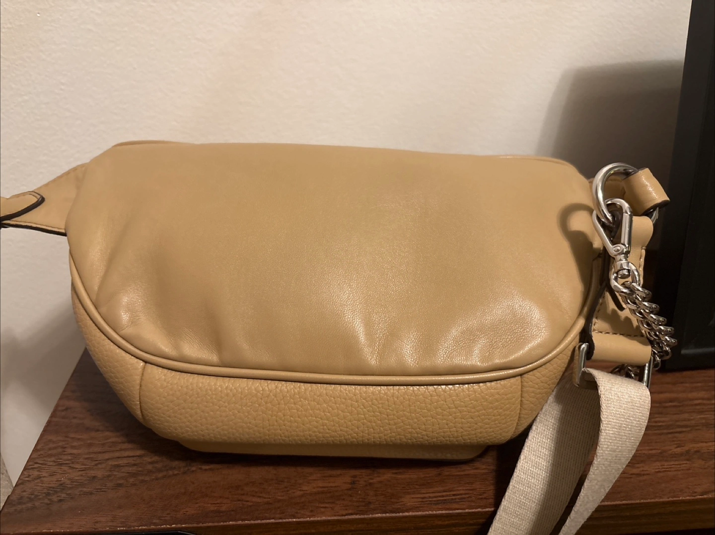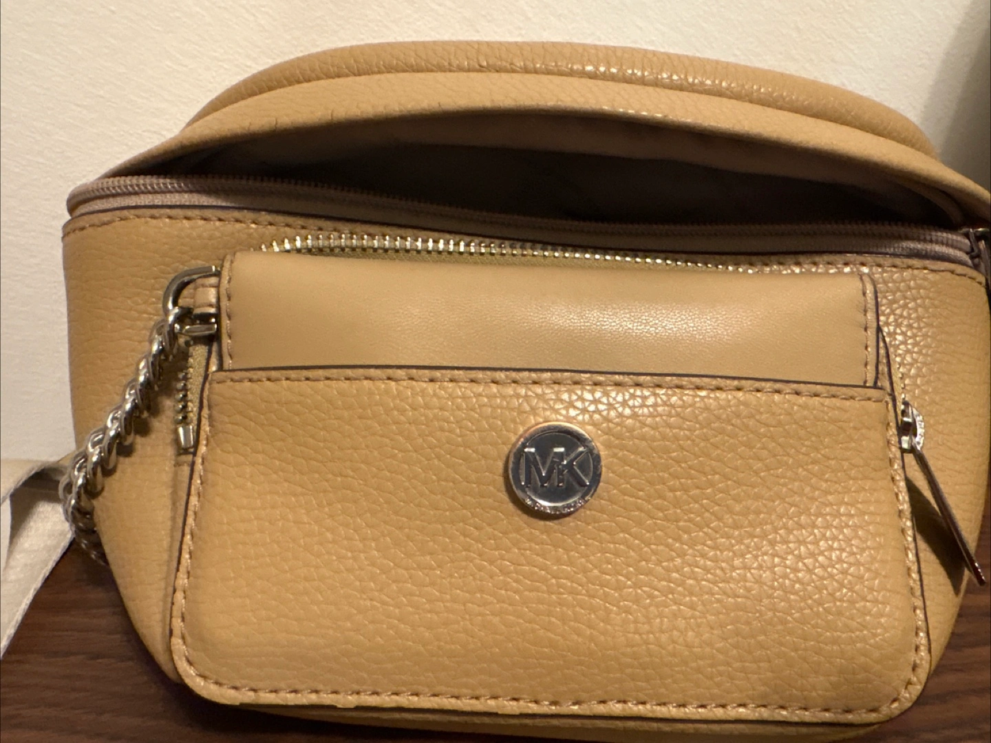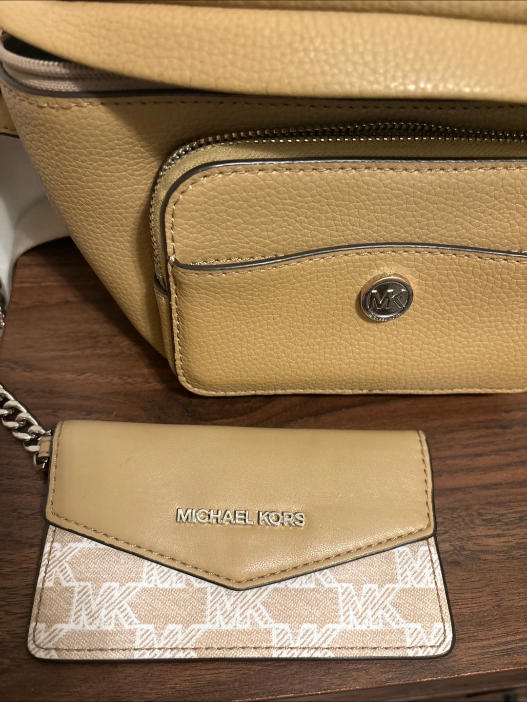 Selling a Michael Kors belt bag in a lovely neutral colour! It comes with a matching card holder. The bag has a zippered compartment and a front pocket with the MK logo. Perfect for keeping your essentials close and adding a touch of style to your outfit. Good used condition, please see pictures