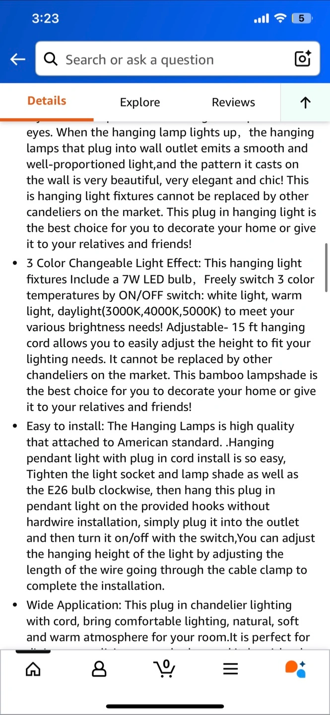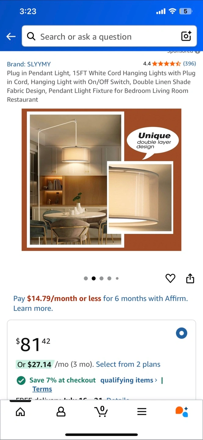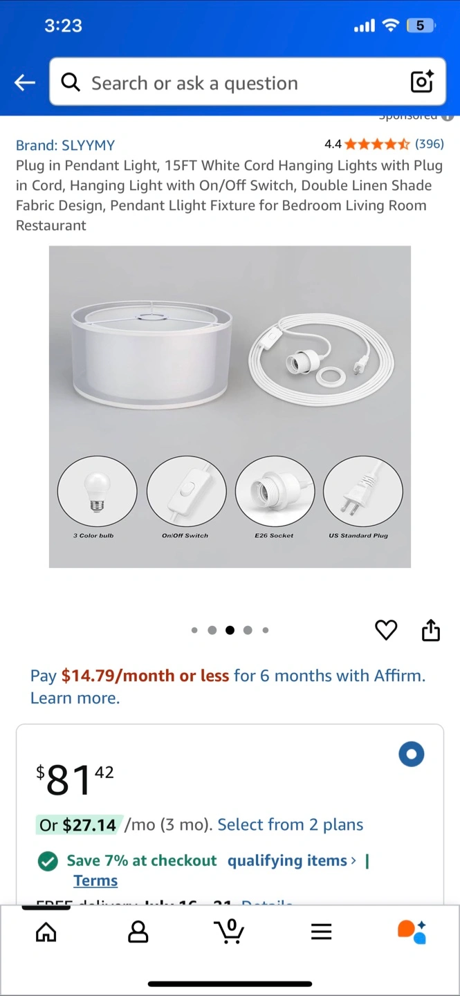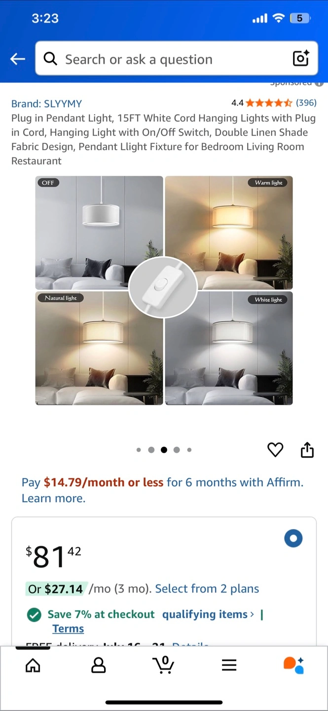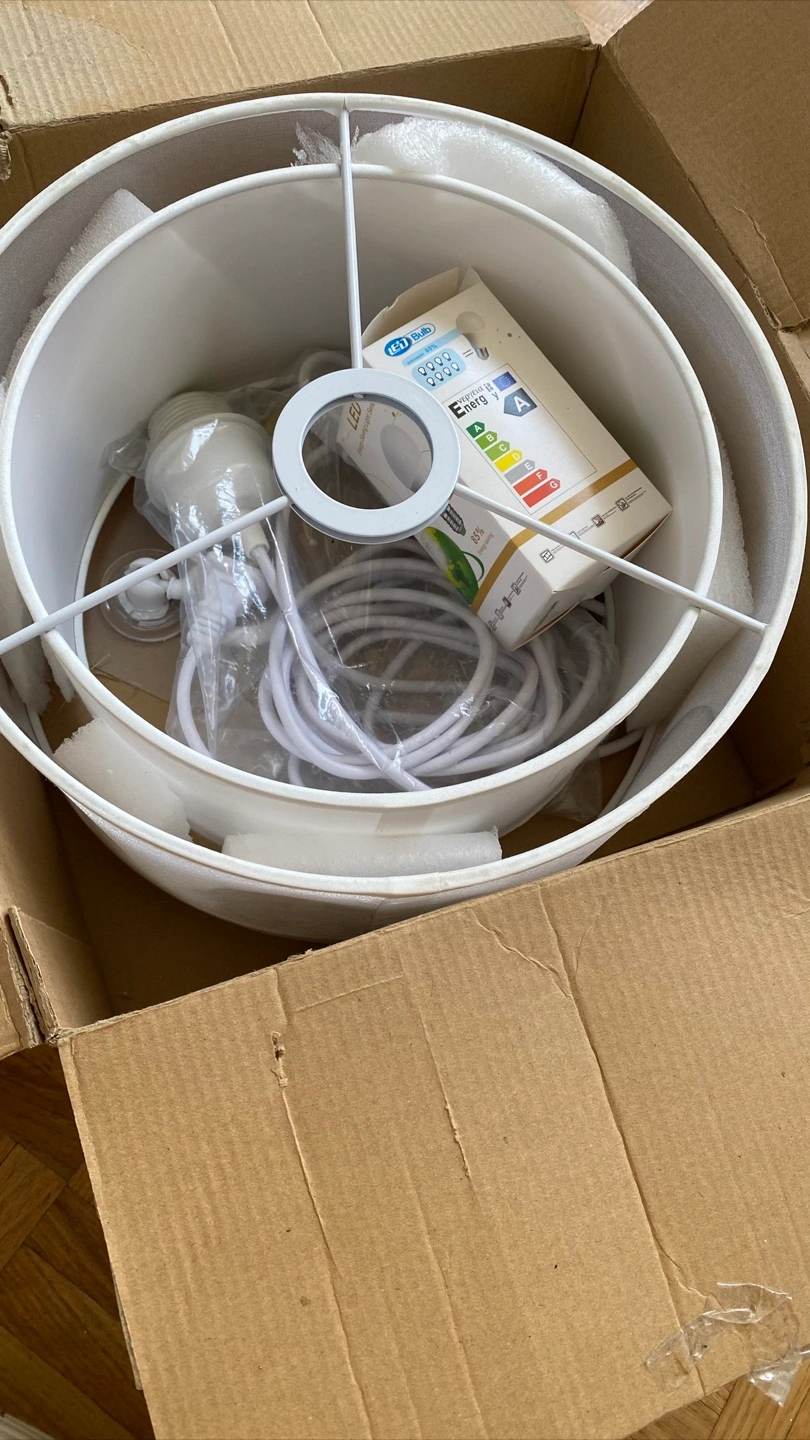 Looking to brighten up your space? I'm selling a SLYYMY pendant light. It comes with a 15FT white cord and a handy on/off switch. The double linen shade fabric design adds a touch of elegance. It's perfect for a bedroom, living room, or even a restaurant. The light also features 3 colour changeable light effects with a 7W LED bulb!
