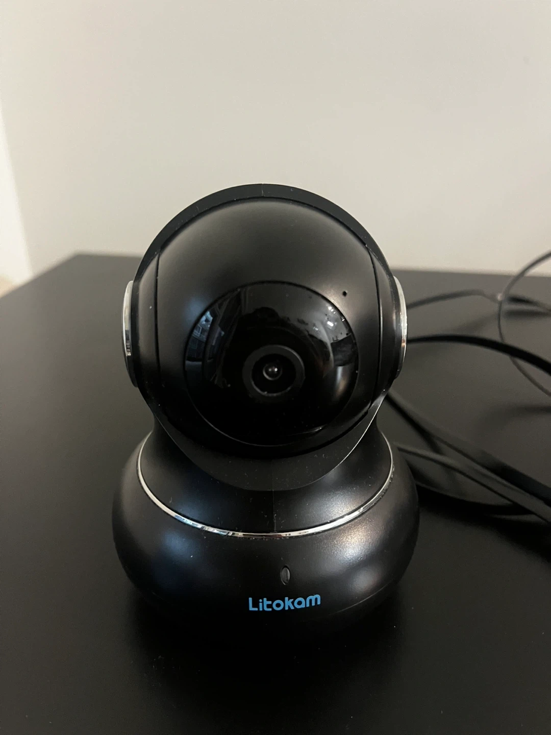 Selling a Litokam security camera in black. It's in great condition and ready to use! Perfect for keeping an eye on things around the house or office. It has a sleek design that will fit right in