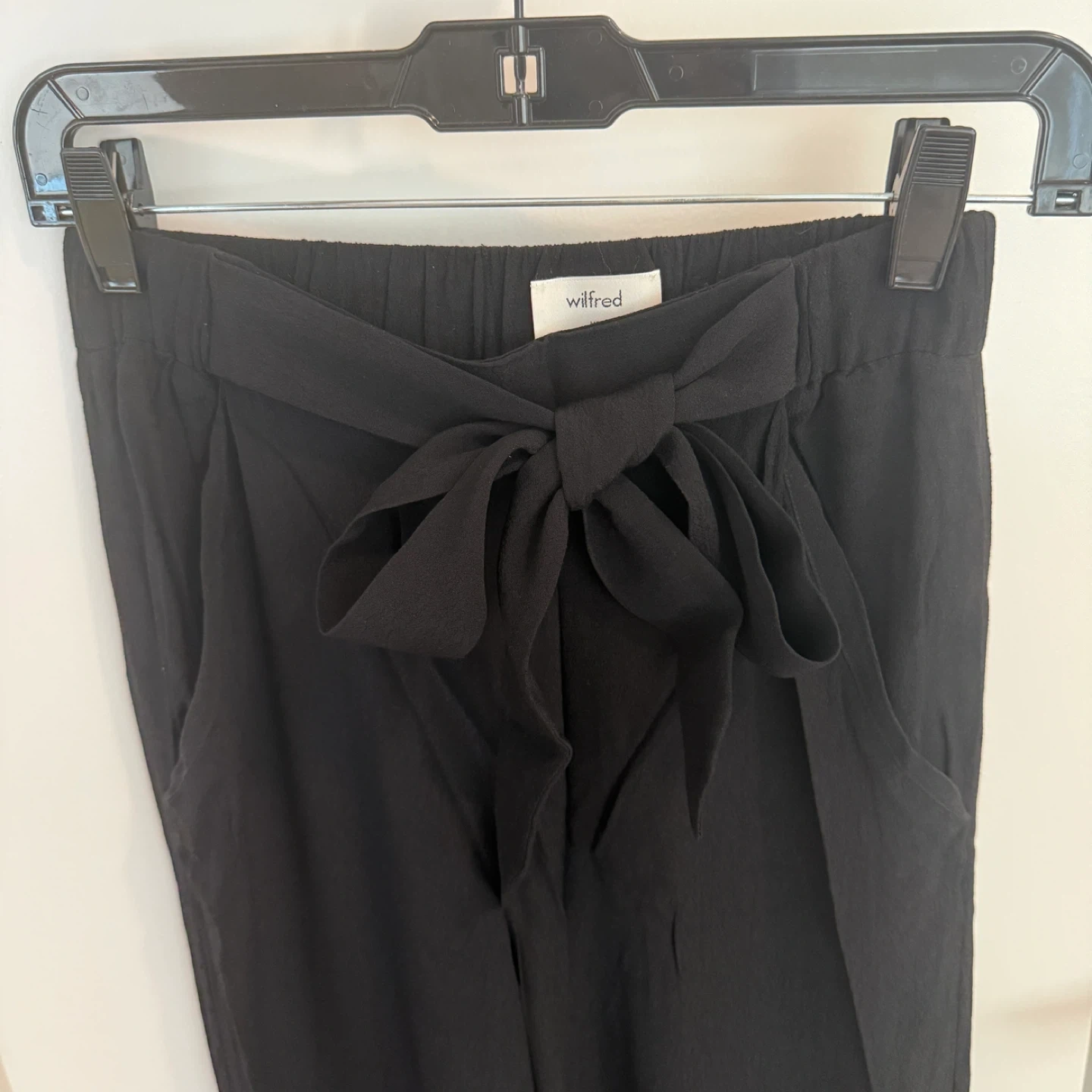 Wilfred Faun pants from Aritzia New without tag, never worn XS Retail price $110+tax Wide-leg High-waisted, banded waist Adjustable self-tie at the waist Made with drapey pebbled crepe fabric Not accepting lowball offers