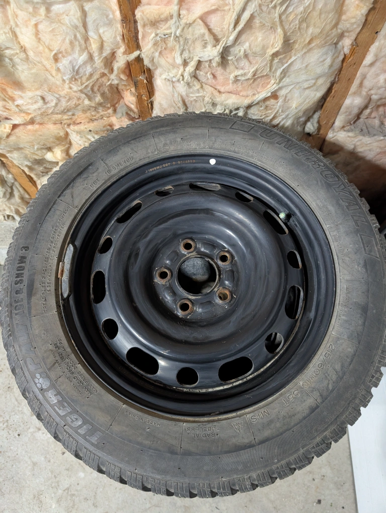 (4)-215/60R16 Winter Tires On Steel Rims Off 2017 Mazda 3 Uniroyal Tiger Paw Ice And Snow Winter Tires 9/32nds Or 90% Of Tread Left Will fit many years of Mazda 3 as well as other many other makes and models that use the 5x114.3 bolt pattern Rims are stamped Mazda Bolt Pattern 5x114.3 Center Bore 67.1 Rim 16x6.5 $595.00 Obo Located Near Concordia and Lagimodiere (#37)