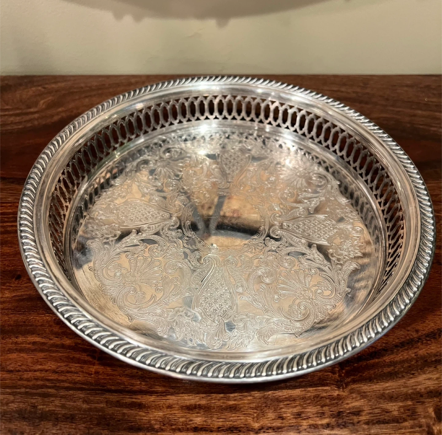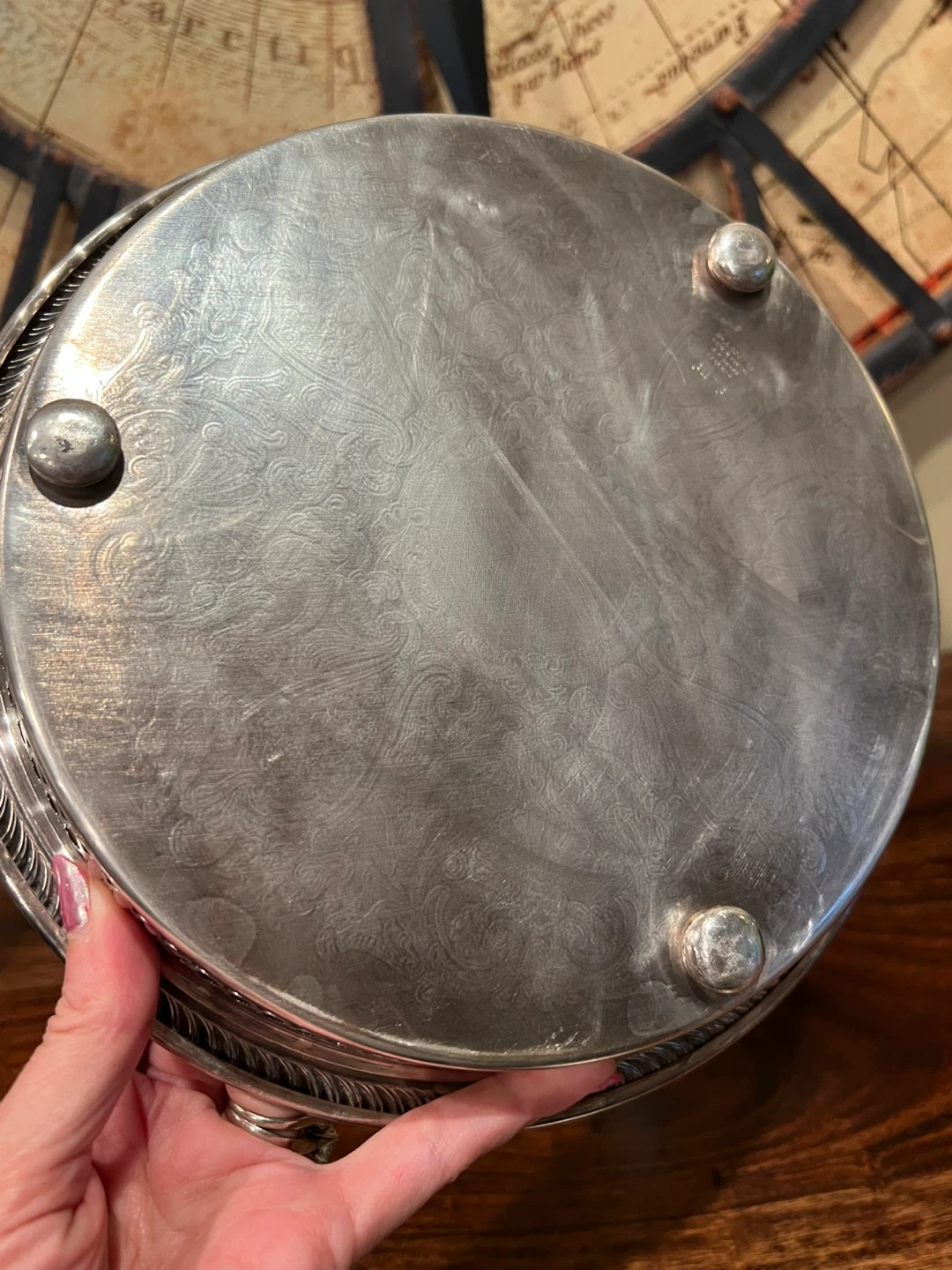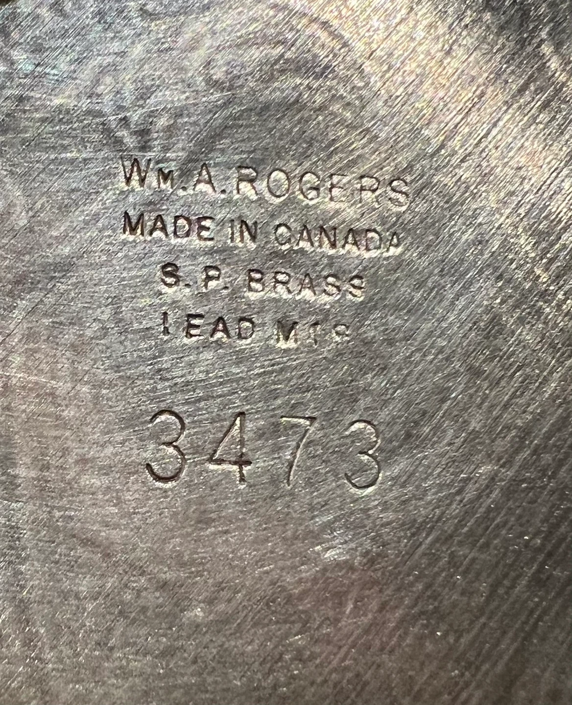 Vintage round tray S.P. brass Wm. A. Rogers Crafted in Canada Stamped 9.25 inches in diameter Great vintage condition Asking $10 Interested? Message me and please check my other listings…