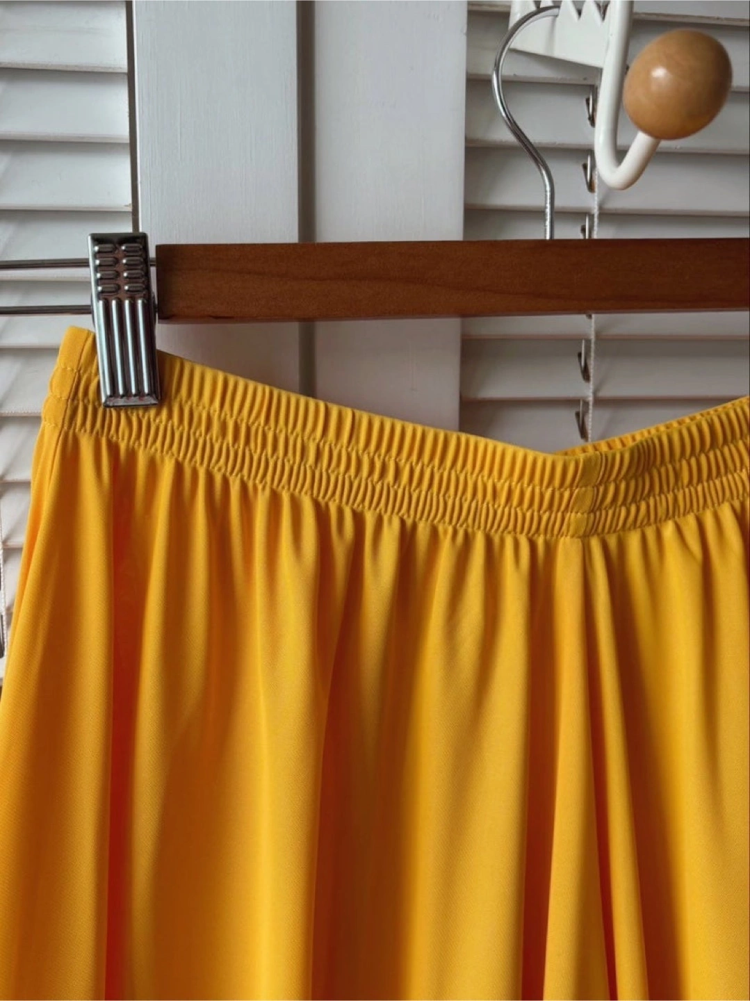π Description: A stunning vintage maxi long skirt designed with a graceful full length silhouette and organza hem detail. This flowy skirt offers dramatic movement, perfect for special occasions, dance, evening wear, or adding a bold statement piece to your wardrobe. β Material: β’ Shell: 100% Polyester β’ Hem detail: Organza style accent β Size: Flat Measurements β’ Waist: 33β45 cm (elastic waistband) β’ Total Length: 95 cm β’ Tagged size: Free (fits closer to M-L for Women depending on desired fit) Please refer to detailed measurements for best fit. β Features: β’ Elastic waistband for comfort and flexibility β’ Full maxi length with flowy drape β’ Lightweight, unlined design for layering or statement styling β’ Organza hem adds volume, movement, and elegance β’ Perfect for evening wear, party looks, ballroom, or vintage-inspired outfits π Condition: β’ Overall in excellent vintage or secondhand condition. Due to the nature of items, there may be minor signs of wear, such as slight stains or small imperfections.