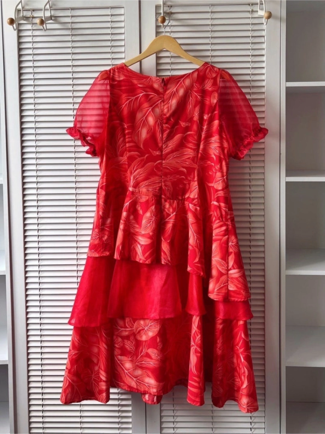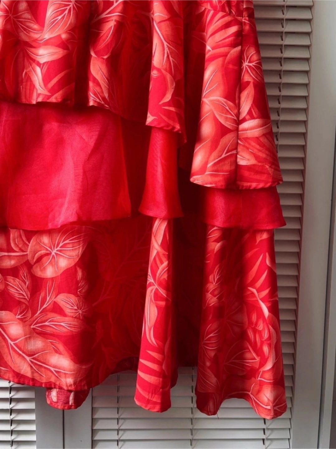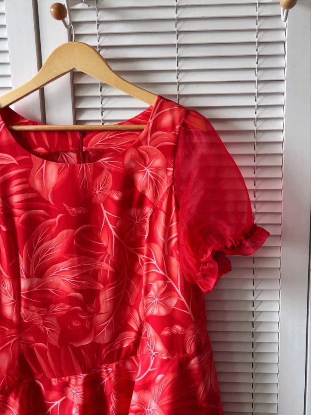 📌 Description: This stunning vintage Hawaiian dress combines bold tropical patterns with a feminine silhouette. Designed with puff organza sleeves, layered ruffle hem, and a flattering back zipper closure, it’s perfect for vacation getaways, summer parties, luaus, or retro-inspired evening looks. ✔ Material: • 65% Polyester, 35% Cotton • Unlined ✔ Size: Flat Measurements • Chest (pit to pit): 55 cm • Waist: 50 cm • Total Length: 114 cm • Tagged size: Not Available (fits closer to L for Women depending on desired fit) Please refer to detailed measurements for best fit. ✔ Features: • Bold Hawaiian-inspired tropical floral print • Semi-sheer puff organza short sleeves with ruffled trim • Tiered layered ruffle hem for volume and flow • Back zipper closure • Breathable cotton-blend fabric, lightweight and easy to wear • Perfect for luaus, summer vacations, parties, or vintage collectors 📌 Condition: • Overall in excellent vintage or secondhand condition. Due to the nature of items, there may be minor signs of wear, such as slight stains or small imperfections.