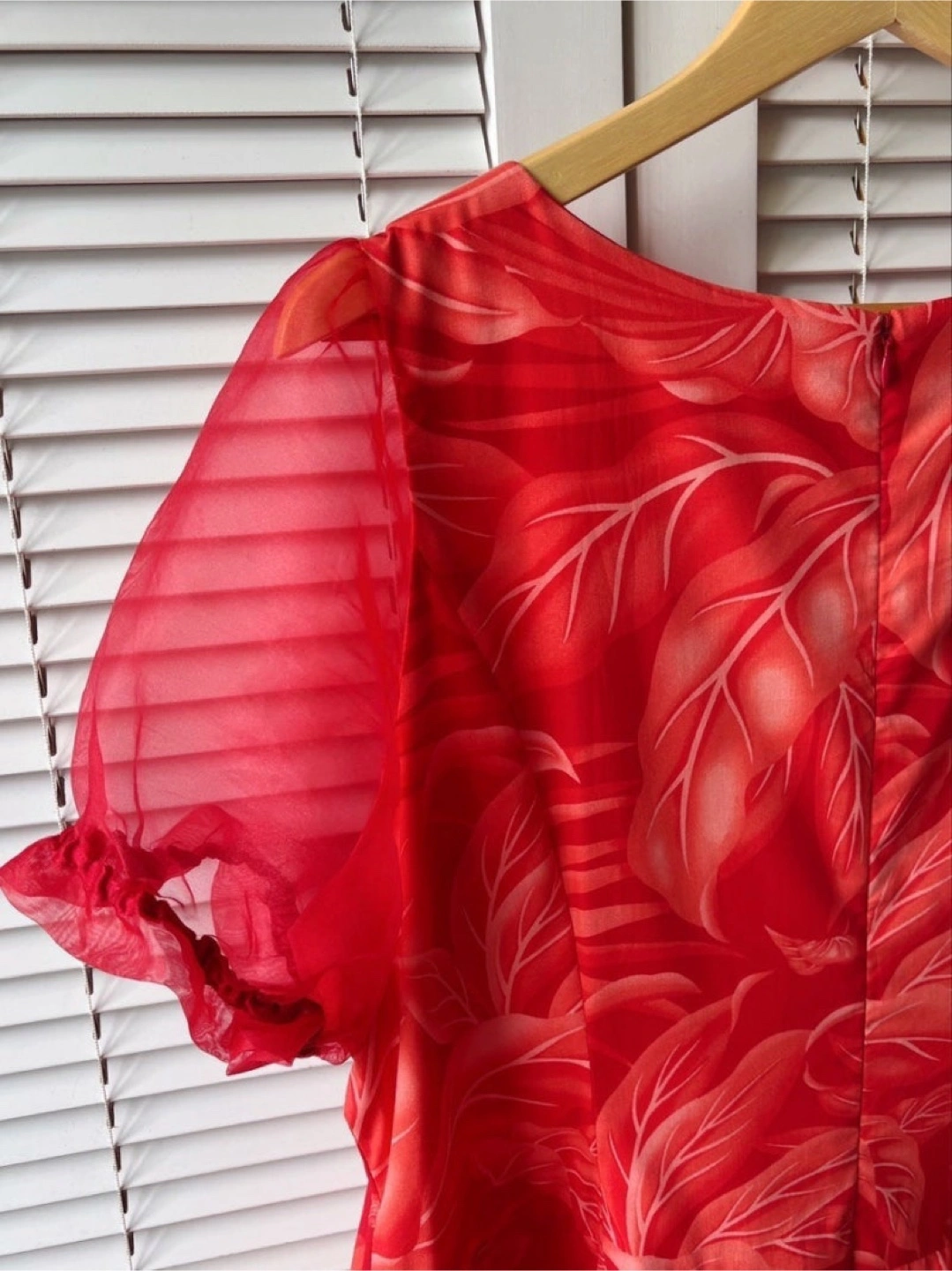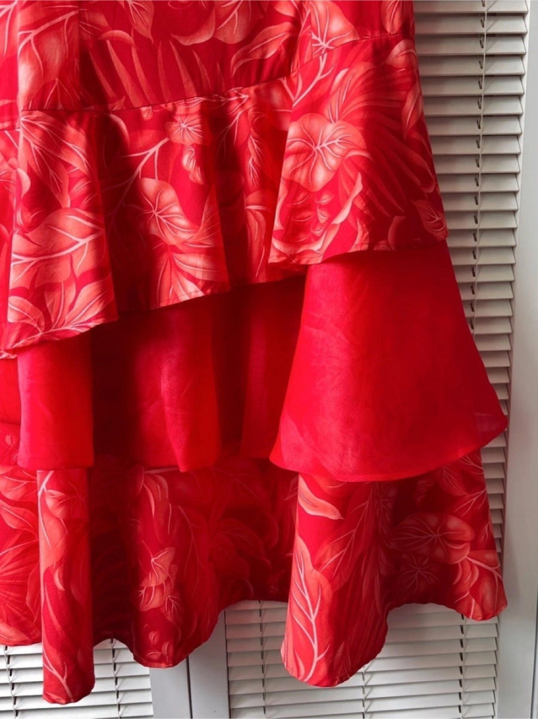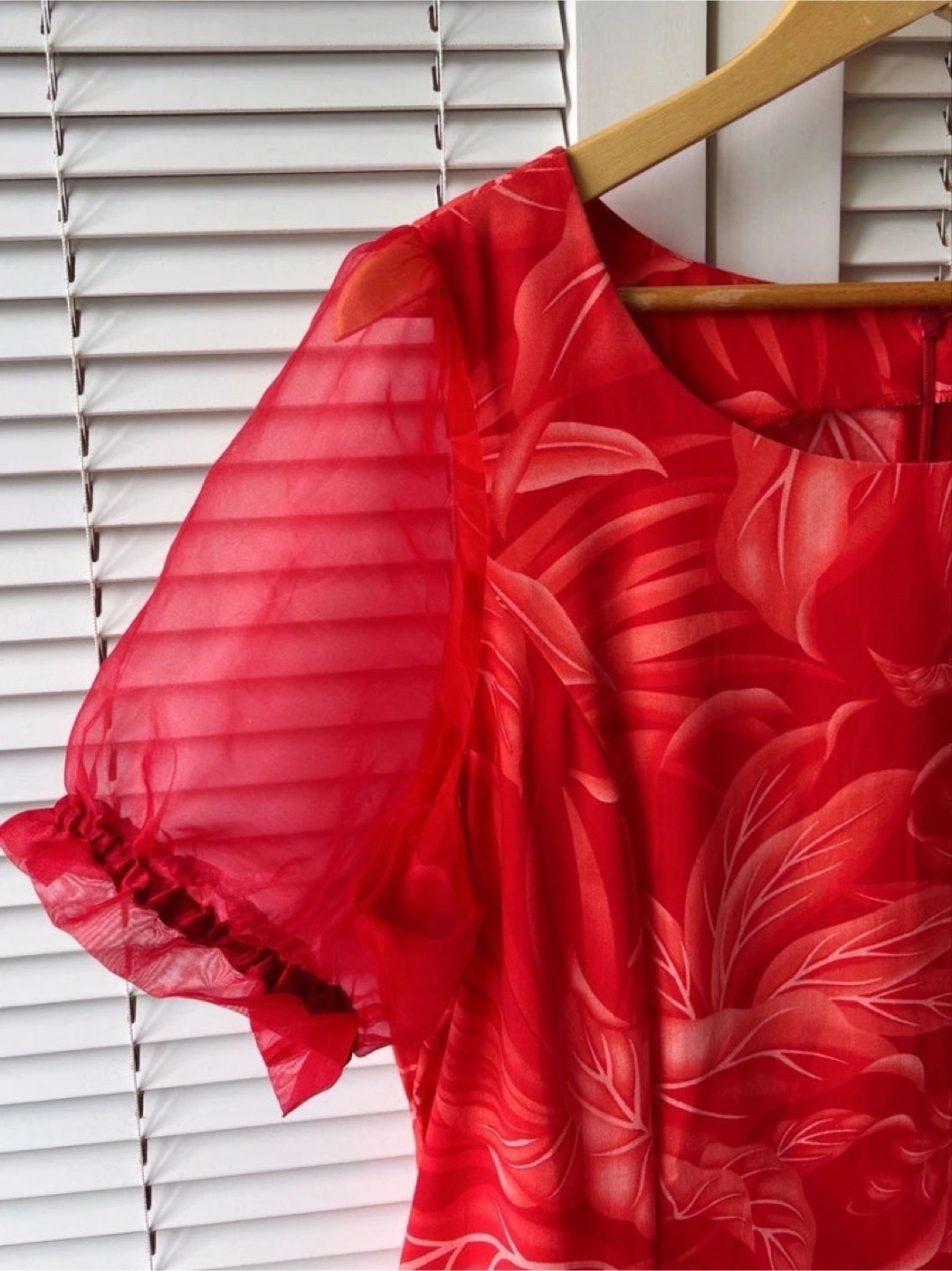 📌 Description: This stunning vintage Hawaiian dress combines bold tropical patterns with a feminine silhouette. Designed with puff organza sleeves, layered ruffle hem, and a flattering back zipper closure, it’s perfect for vacation getaways, summer parties, luaus, or retro-inspired evening looks. ✔ Material: • 65% Polyester, 35% Cotton • Unlined ✔ Size: Flat Measurements • Chest (pit to pit): 55 cm • Waist: 50 cm • Total Length: 114 cm • Tagged size: Not Available (fits closer to L for Women depending on desired fit) Please refer to detailed measurements for best fit. ✔ Features: • Bold Hawaiian-inspired tropical floral print • Semi-sheer puff organza short sleeves with ruffled trim • Tiered layered ruffle hem for volume and flow • Back zipper closure • Breathable cotton-blend fabric, lightweight and easy to wear • Perfect for luaus, summer vacations, parties, or vintage collectors 📌 Condition: • Overall in excellent vintage or secondhand condition. Due to the nature of items, there may be minor signs of wear, such as slight stains or small imperfections.