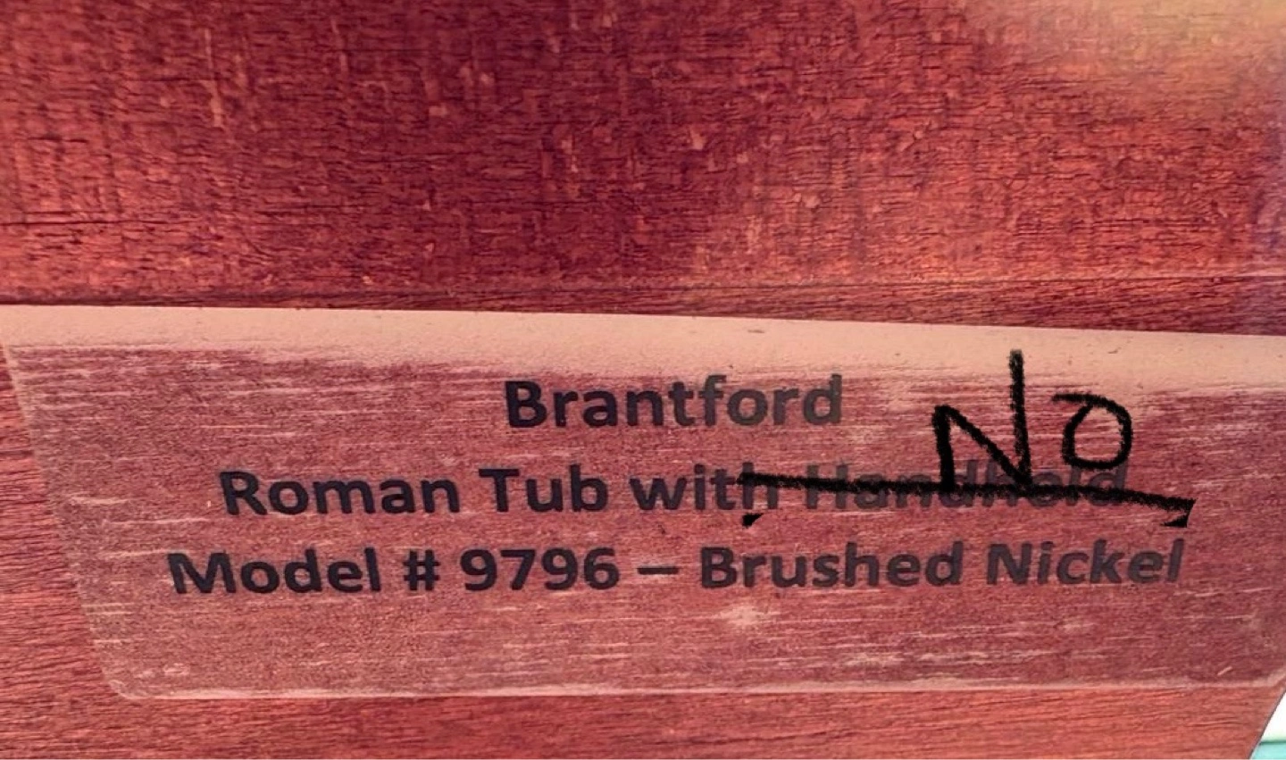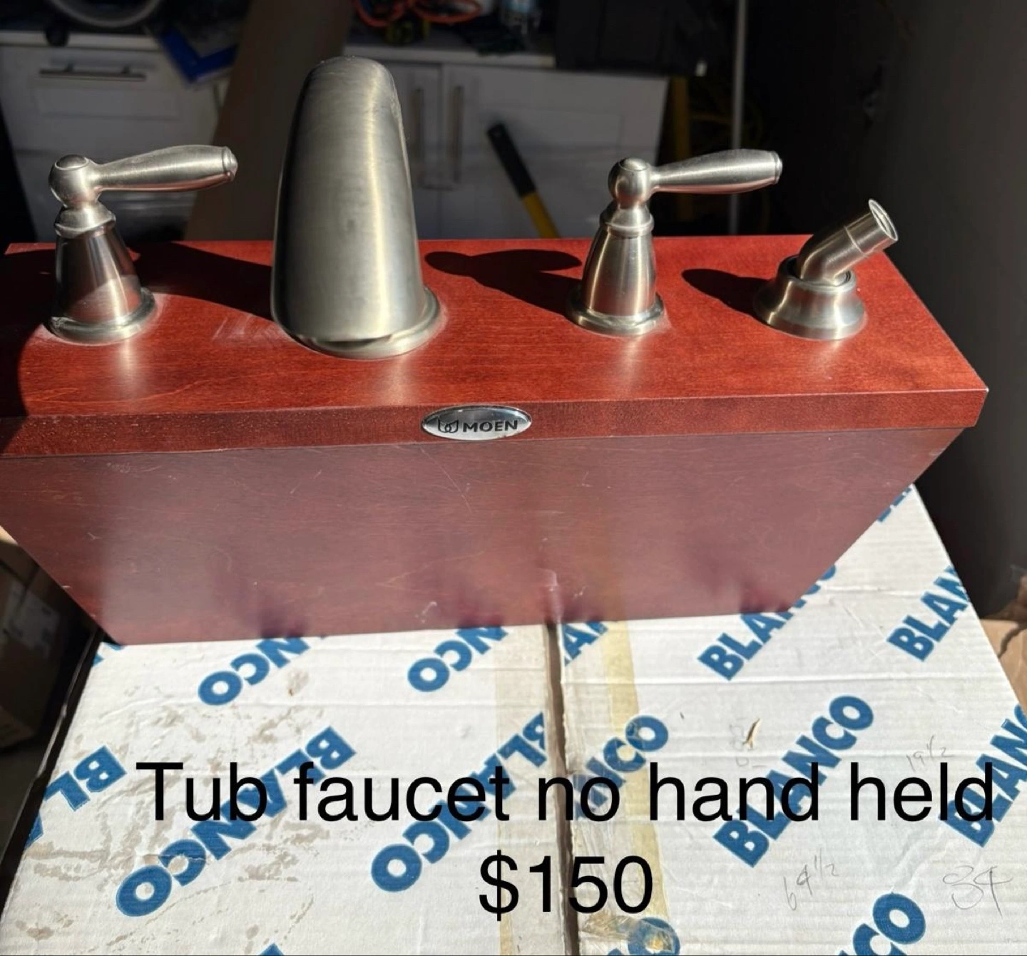 Selling a new display model Moen Brantford Roman tub faucet in brushed nickel. This faucet does not have a handheld component. Asking $150