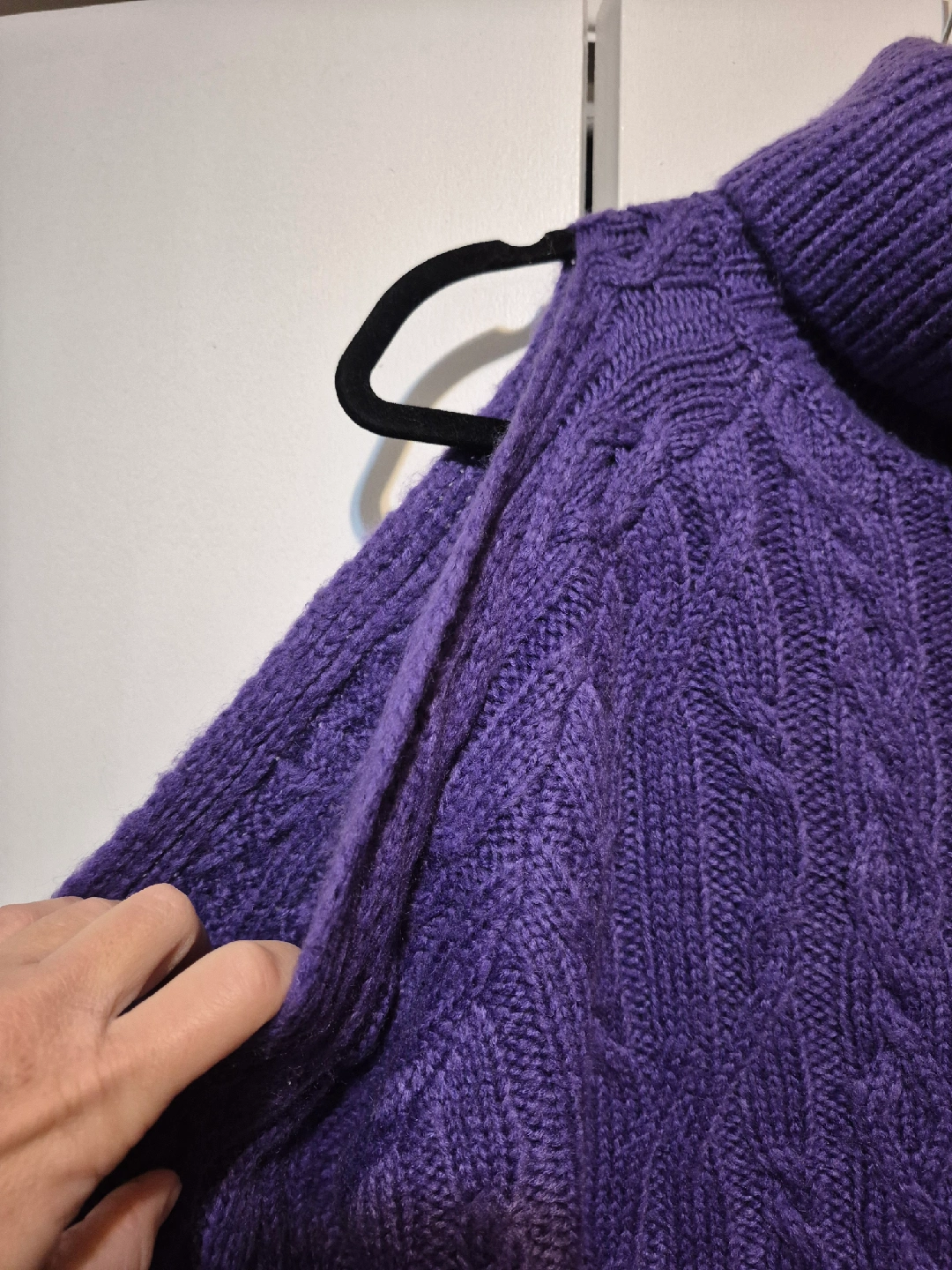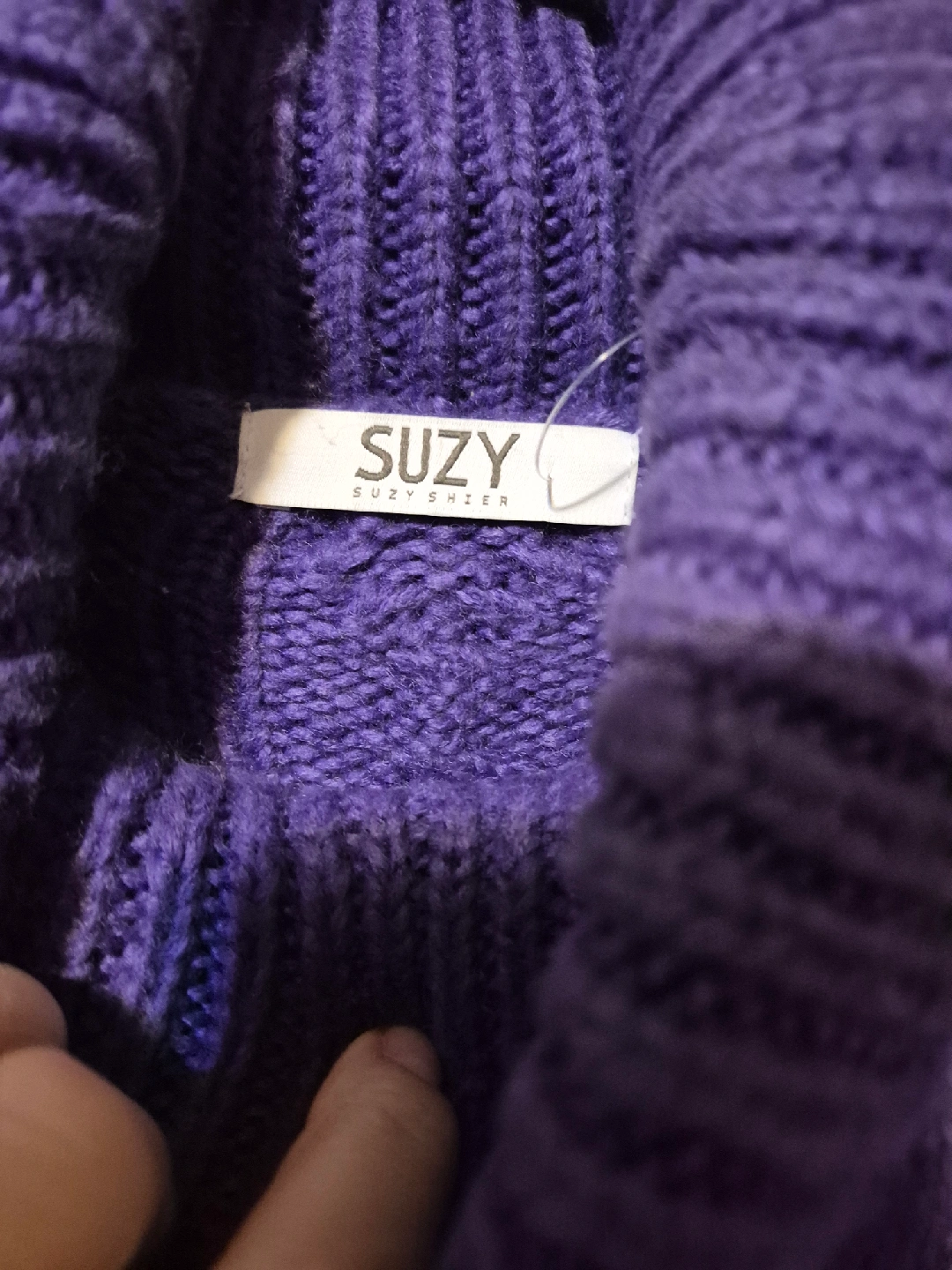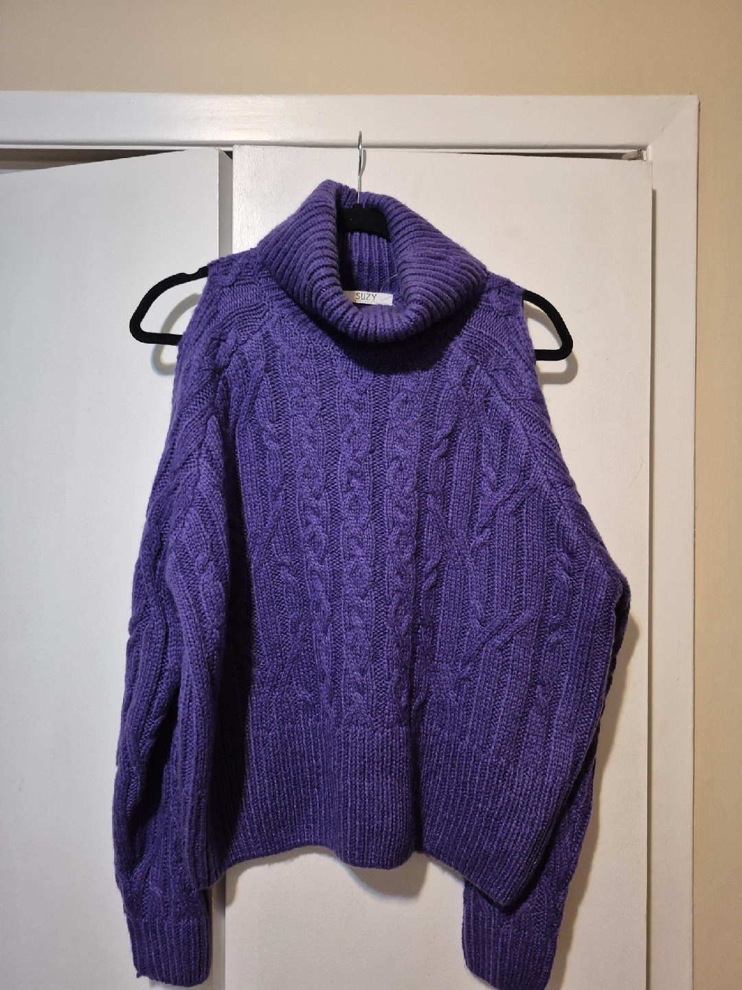 Cozy up in this lovely purple knit sweater from Suzy Shier! It features a stylish cable knit design and a comfortable turtleneck. Perfect for staying warm and fashionable during the cooler months!