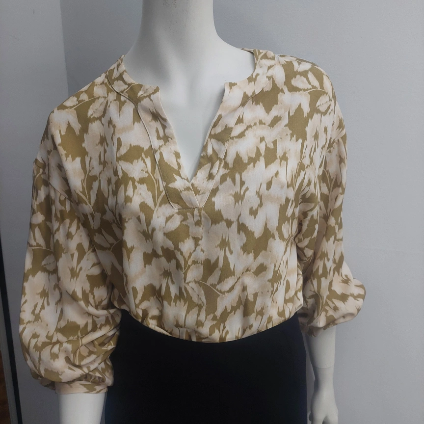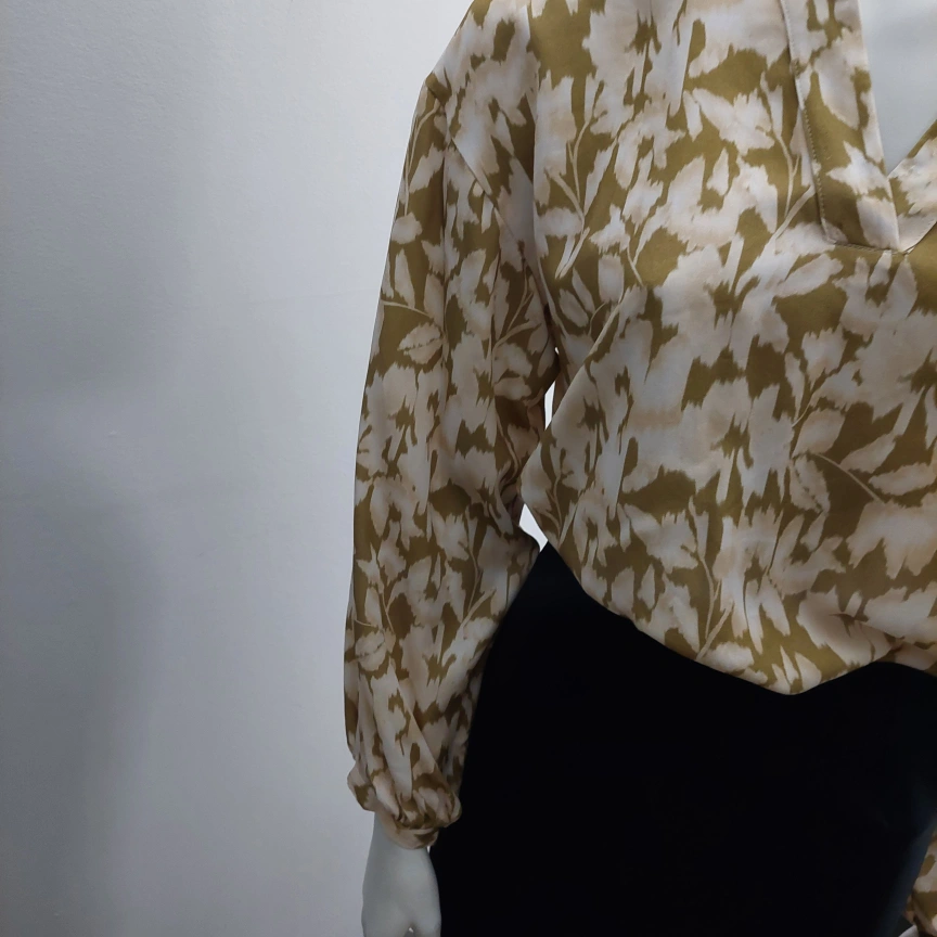 Perfect for the Fall! This blouse has a unique floral print! It features a V-neck and long, billowy sleeves. The material feels soft and comfortable, perfect for a casual or dressed-up look. From clean smoke and pet - free home. Please browse through my other listings. Discount applies to bundling.