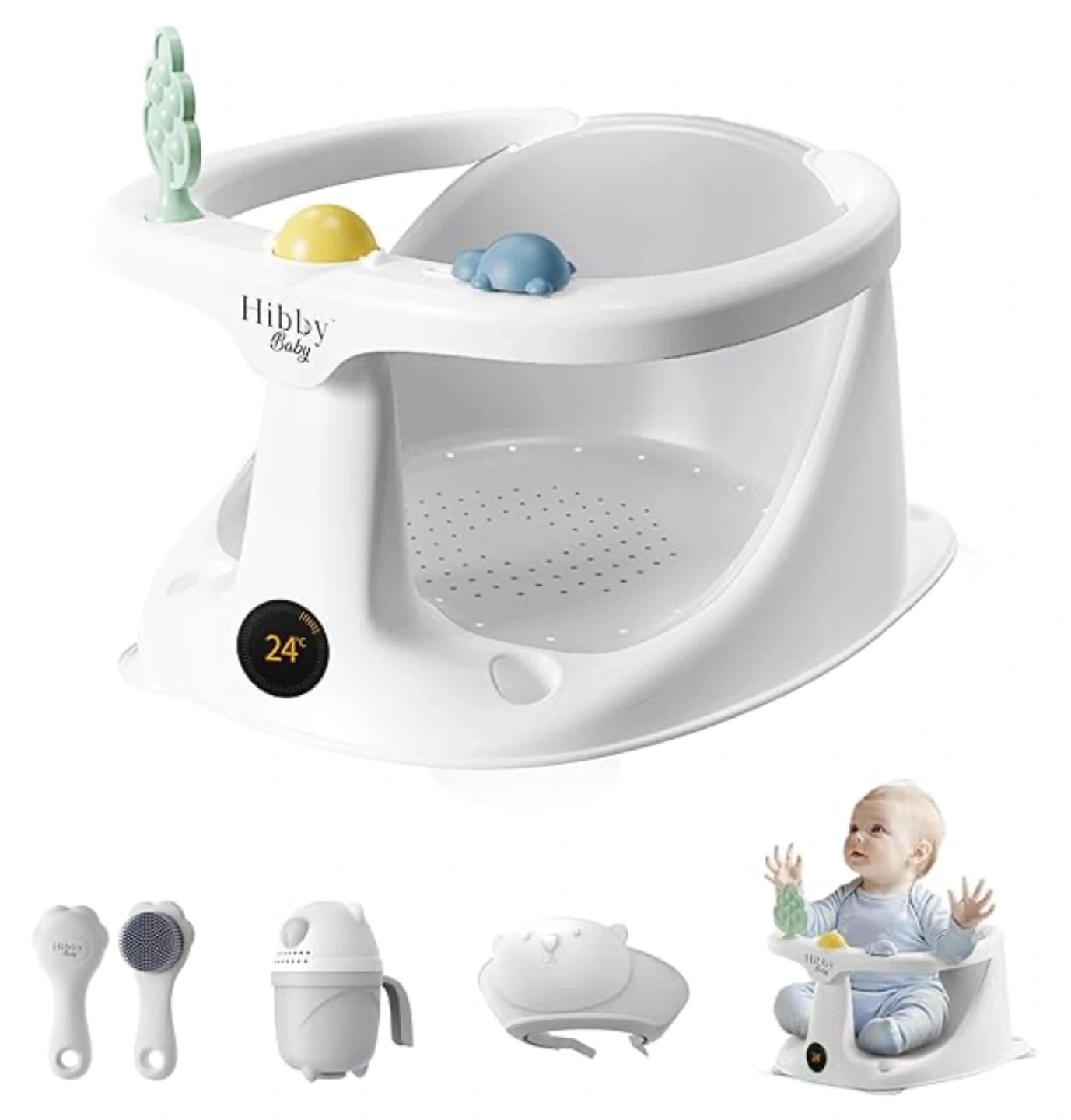 Selling a Hibby Baby bath seat! It comes with all the accessories shown in the pictures. The box is also included. It's in great condition and ready for a new home
