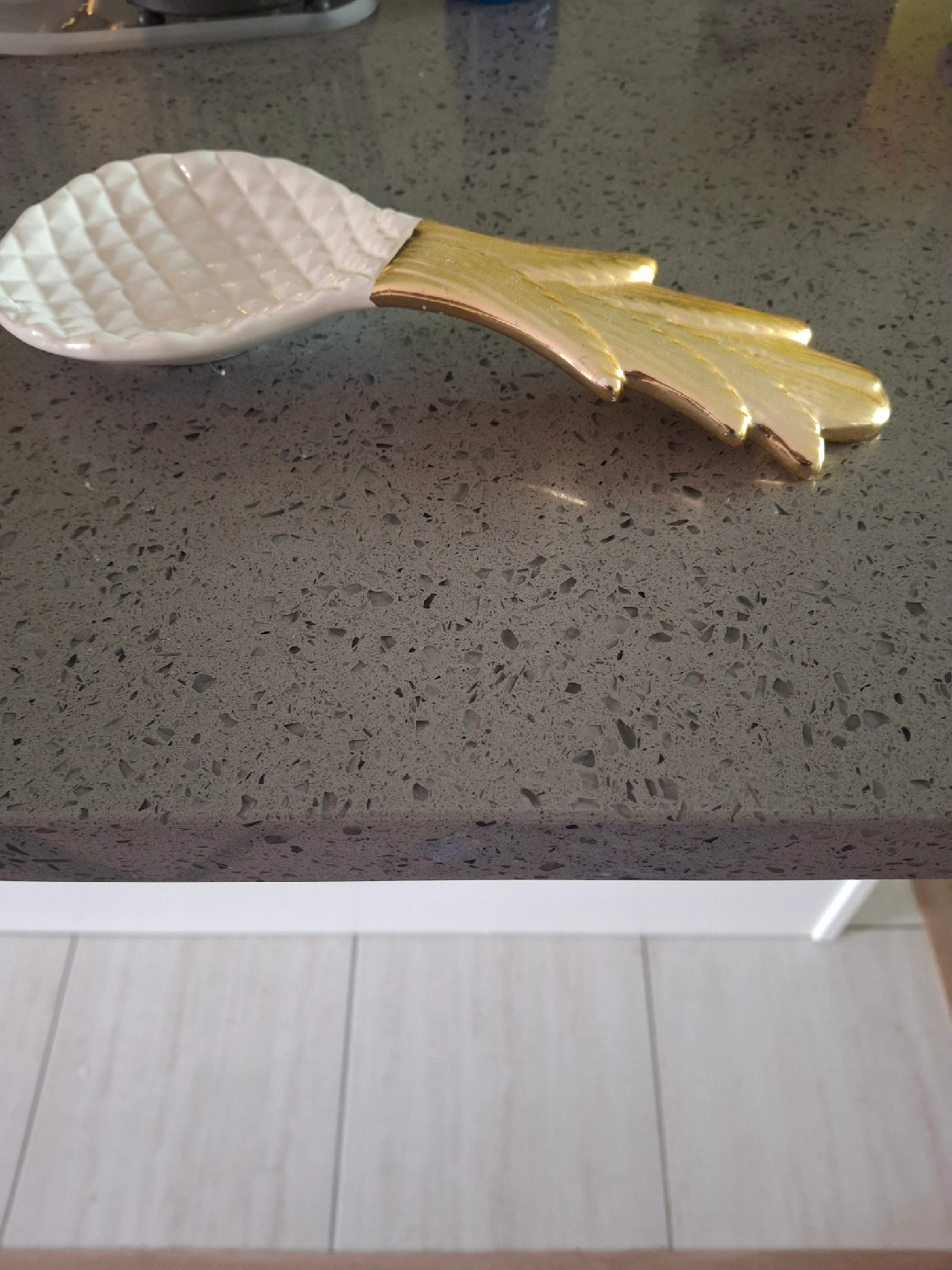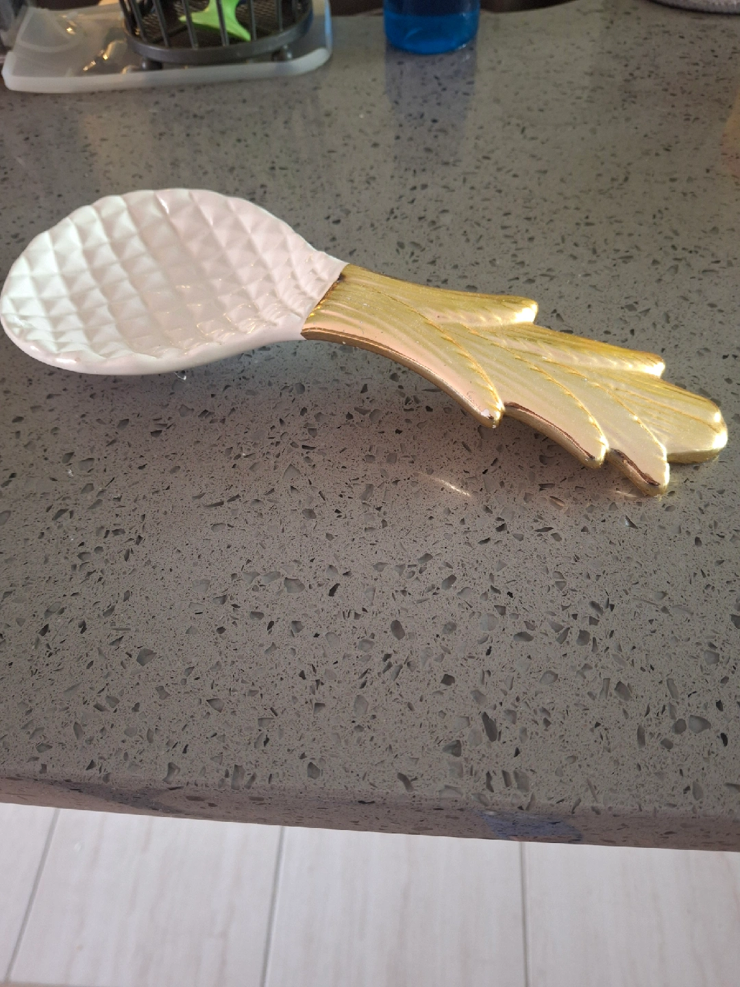 Add a touch of tropical charm to your kitchen with this pineapple-shaped spoon rest! It features a crisp white ceramic spoon rest with a shiny gold handle. Perfect for keeping your counters clean while you cook