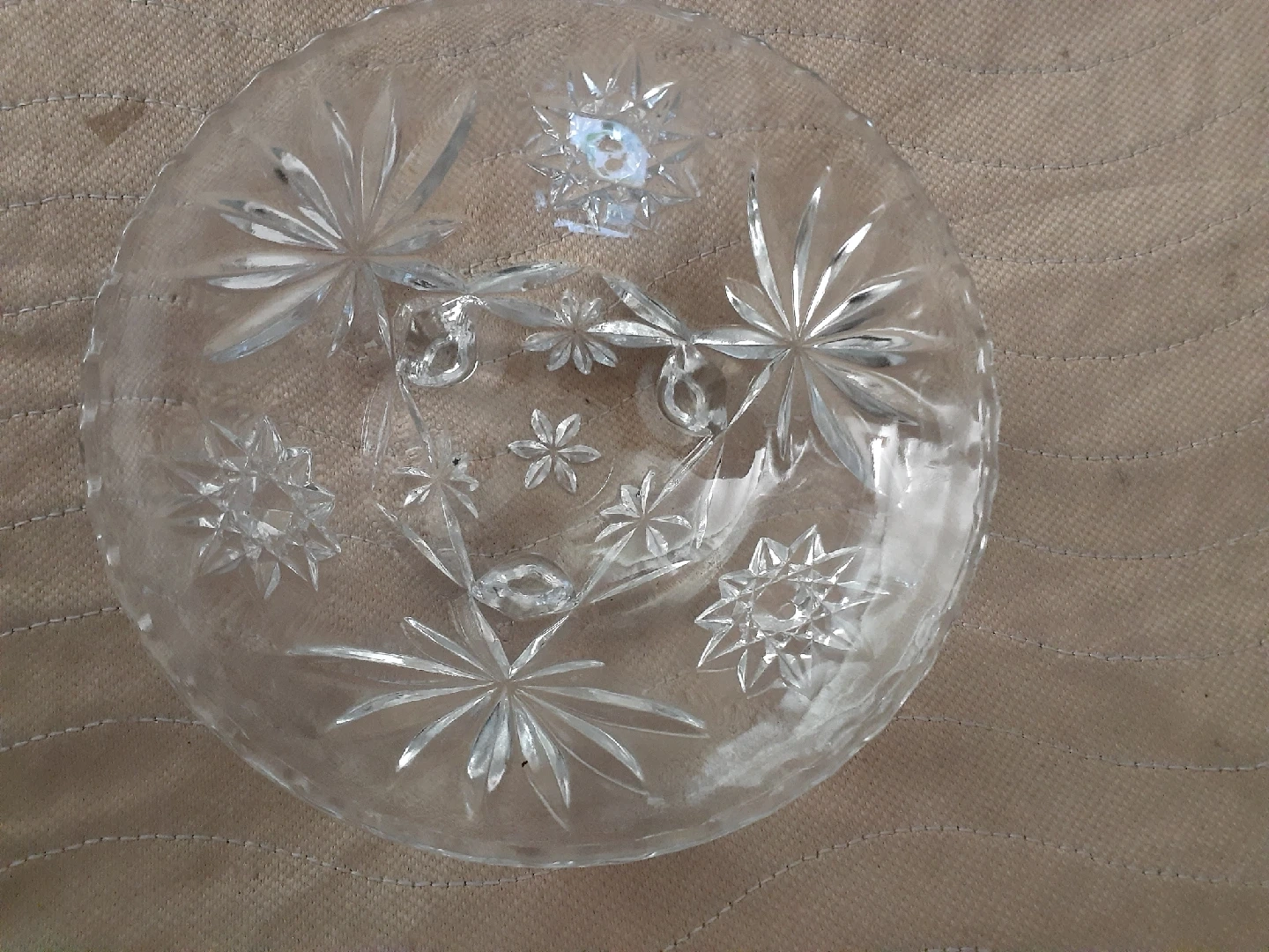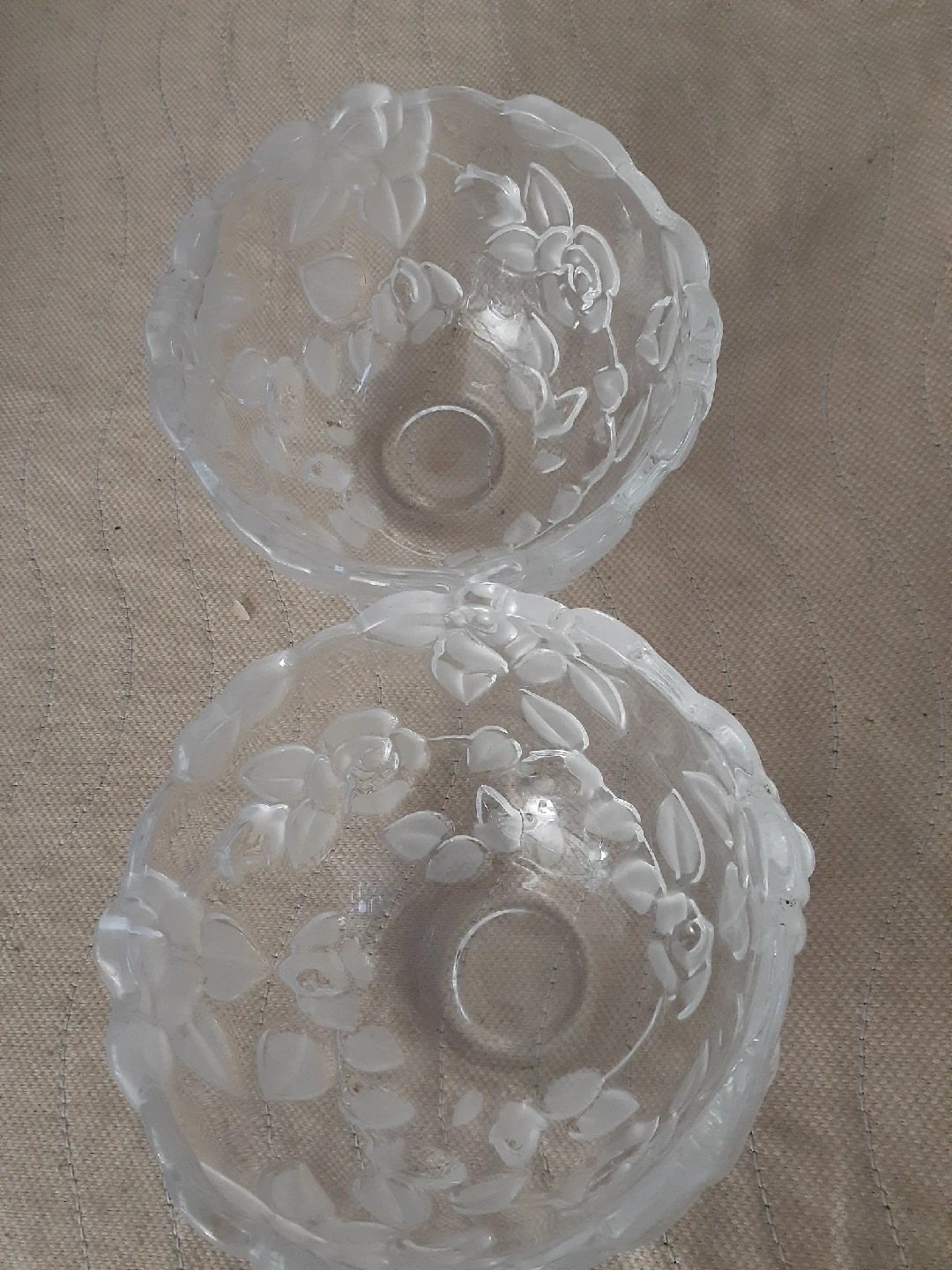 Selling a beautiful crystal glass bowl. It features a lovely star design on one side and a floral design on the other. It's in great condition and would make a lovely addition to any home total 6 piece, 4 big size different styles 2 piece different Small sizes ,styles 4 piece each for $6,$24 and other 2 for $10 or each $5.
