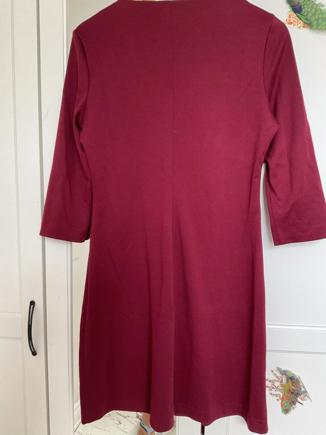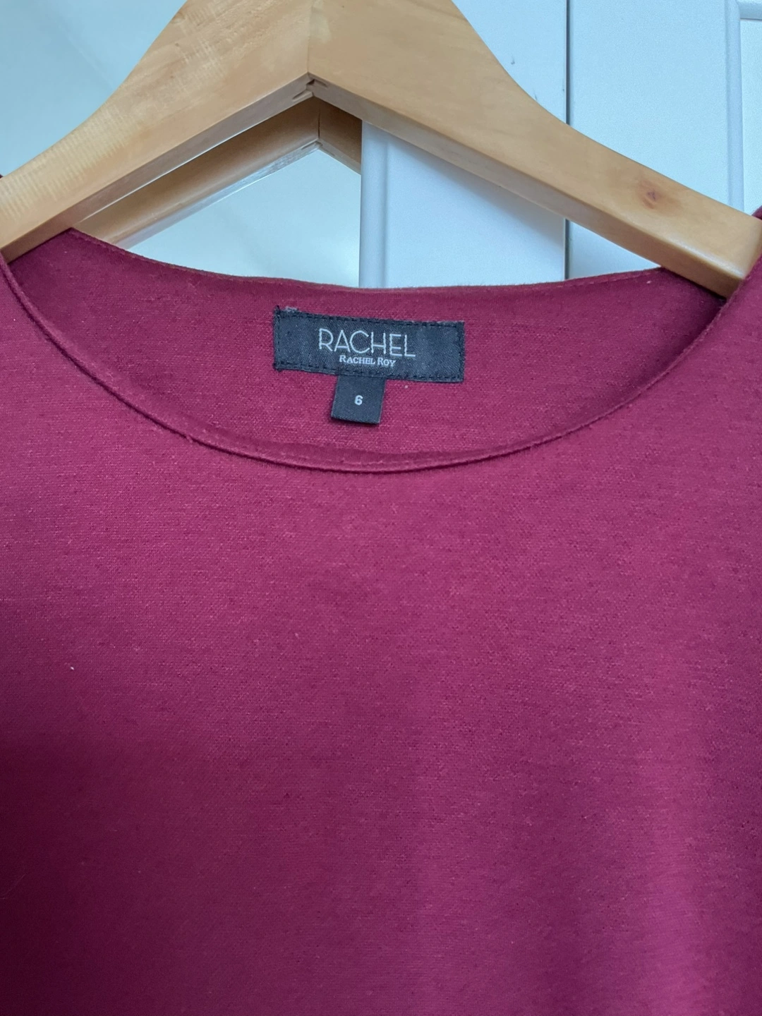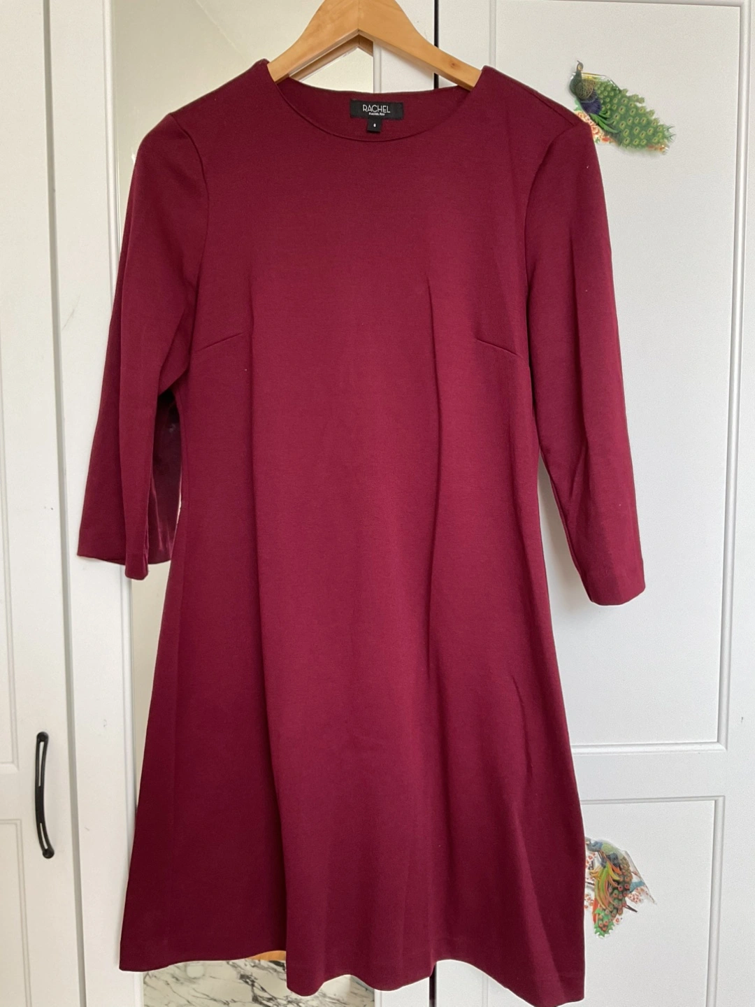 A lovely burgundy dress from Rachel Roy, perfect for any occasion! It's a size 6 and in great condition. The dress features a simple, elegant design with 3/4 sleeves. It's a comfortable and stylish addition to your wardrobe!