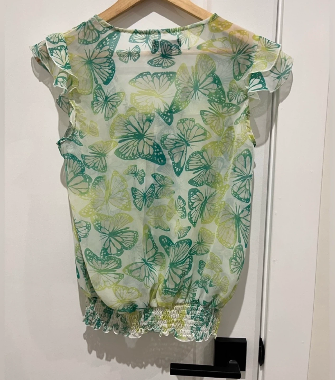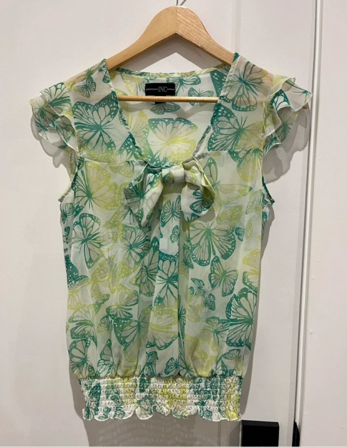 International (INC) Company Green & Blue Sheer Sleeveless Butterfly Blouse 100% polyester Size SM Used - like new! Smoke Free Home π