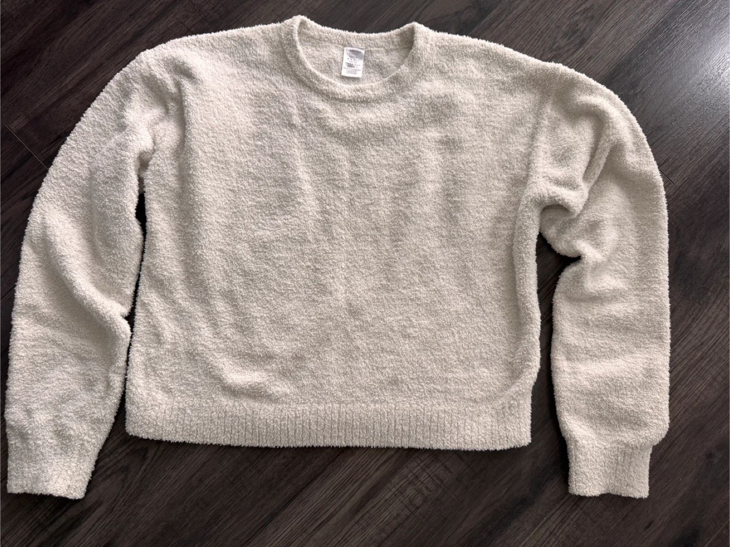 Selling a comfy Calvin Klein sleepwear sweater! It's a size small and made from a soft, fuzzy material. Perfect for lounging around the house on a chilly day