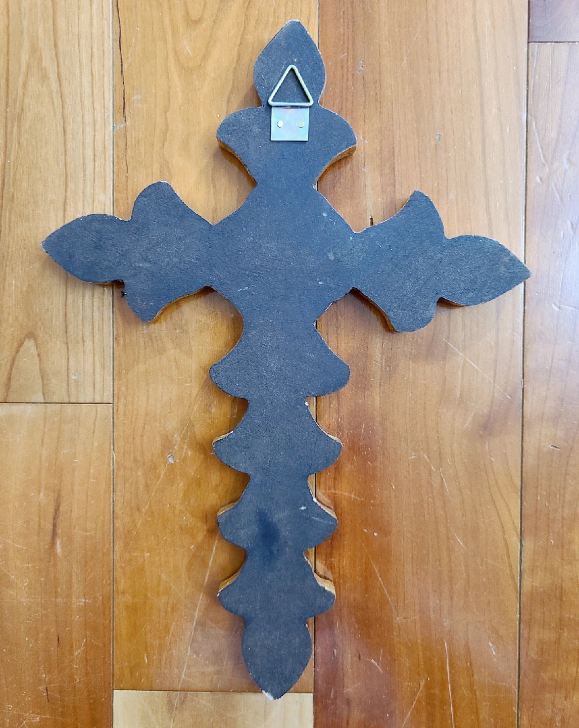 Selling a decorative gold-coloured wall cross. It's in great condition and ready to add a touch of elegance to your home. Perfect for any room!