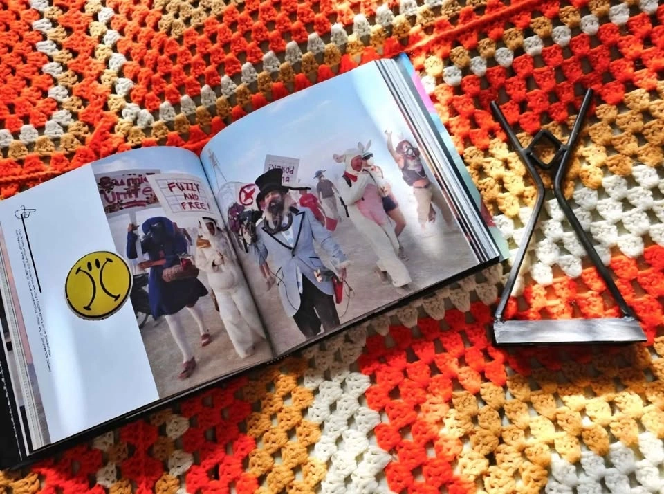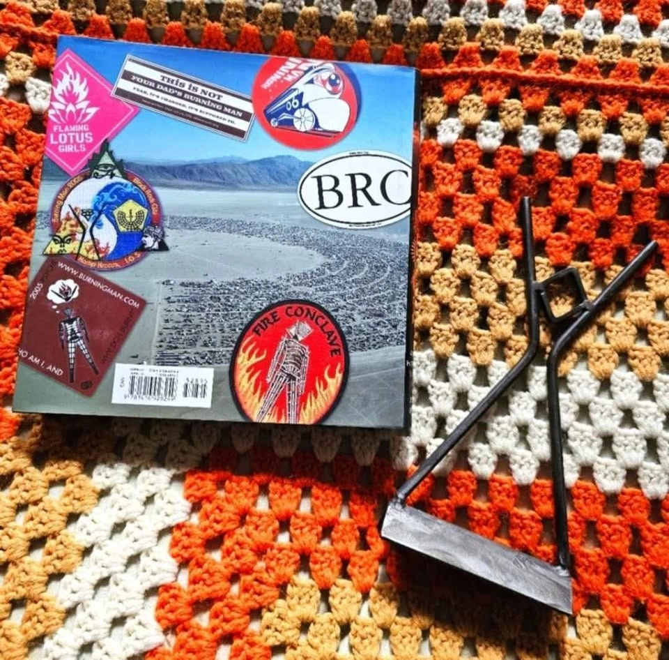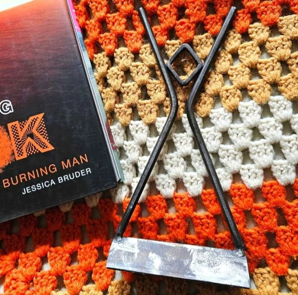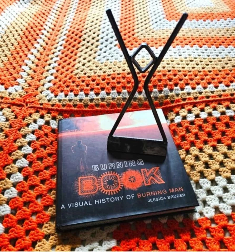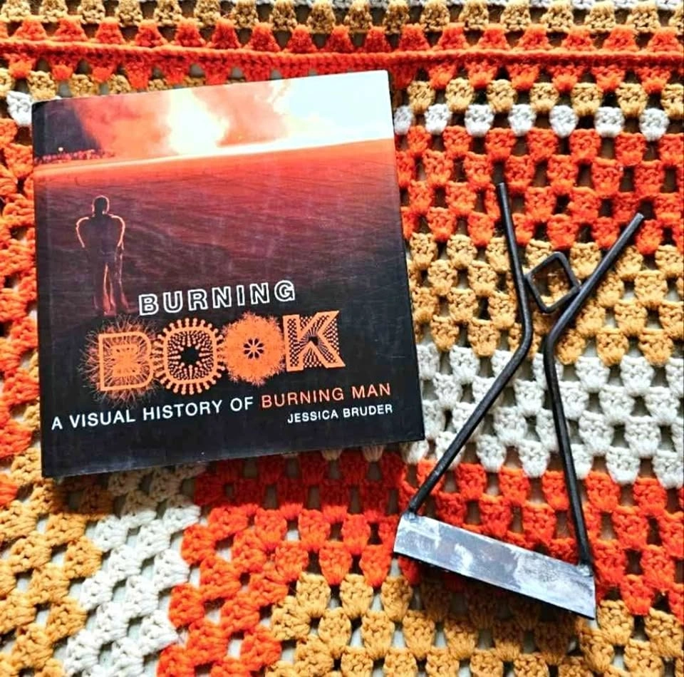 Burning Man bundle pack! Handmade metal sculpture piece of the Man, and a 350 page coffee table book on the history of the fest full of stories and beautiful full-color photography. The sculpture was cut and welded by a local artist and stands about 8.5" tall by 4" wide. Book is titled Burning Book: A Visual History of Burning Man by Jessica Bruder. Spectacular little memento of the fest for yourself or a gift idea for a special burner in your life! hippie rave burner psychedelic