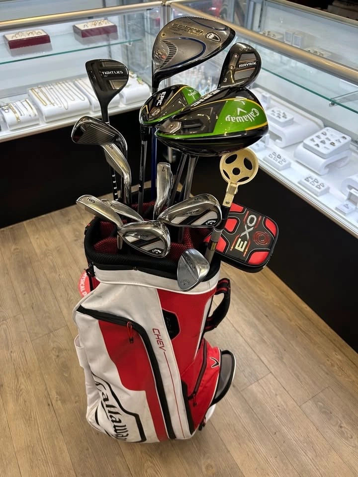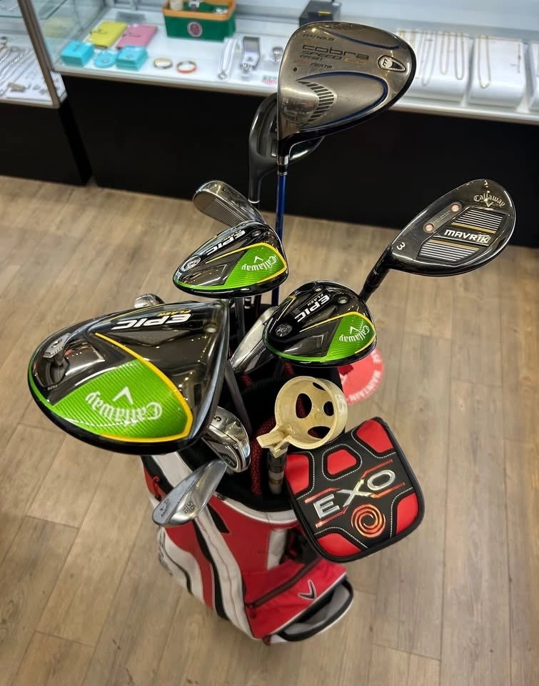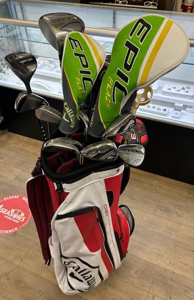 LEFT HANDED GOLF SET - Callaway Mavrik Irons (A, 4, 5, 6, 7, 8, 9) L.H - Callaway Mack Daddy 4 56° | 10° Wedge L.H - Callaway EPIC Flash Fairway Wood 3 Wood 3W 15° L.H - Callaway Epic Flash 10.5° Driver L.H - Callaway Epic Flash 5 18° Wood L.H - Adams Tight Lies 3 Wood 16 Degree L.H - King Cobra Speed LD Offset 5000 Inertia Driver M/10.5° L.H - Callaway Mavrik 3 Hybrid L.H - Odyssey EXO Stroke Lab 2-Ball Putter L.H Comes as seen in photos $1,100 Available at 4 Seasons Pawn Shop & Gold Buyer (Newton Location) 7155 King George Blvd Surrey, BC Canada We are open 9:30 am - 6:00 pm Monday - Saturday and 11:00 am - 6:00 pm on Sundays. For more information visit our shop or give us a call at 6O4-592-O223 We accept multiple forms of payment including cash, e transfer, debit, visa, Mastercard, American Express, certified bank. We also have an interest free layaway plan available, ask us for more information. Thank you for your interest in our products. #117849