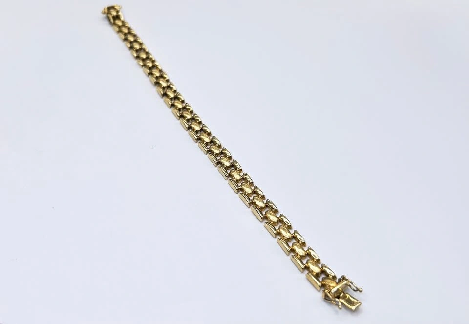 14K Yellow Gold Bracelet - 15.60g - 8 inches Comes as seen in photos $1,600 Available at 4 Seasons Pawn Shop & Gold Buyer (Newton Location) 7155 King George Blvd Surrey, BC Canada We are open 9:30 am - 6:00 pm Monday - Saturday and 11:00 am - 6:00 pm on Sundays. For more information visit our shop or give us a call at 604-592-0223 We accept multiple forms of payment including cash, e transfer, debit, visa, Mastercard, American Express, certified bank. We also have an interest free layaway plan available, ask us for more information. Thank you for your interest in our products. #1016773