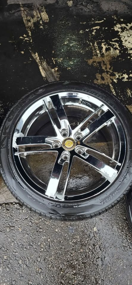 BSA 264 used set of 17s with old tires. Rims do have a chrome peel but good condition. 5x114.3 17x8 Tires currently on are 225/45/17