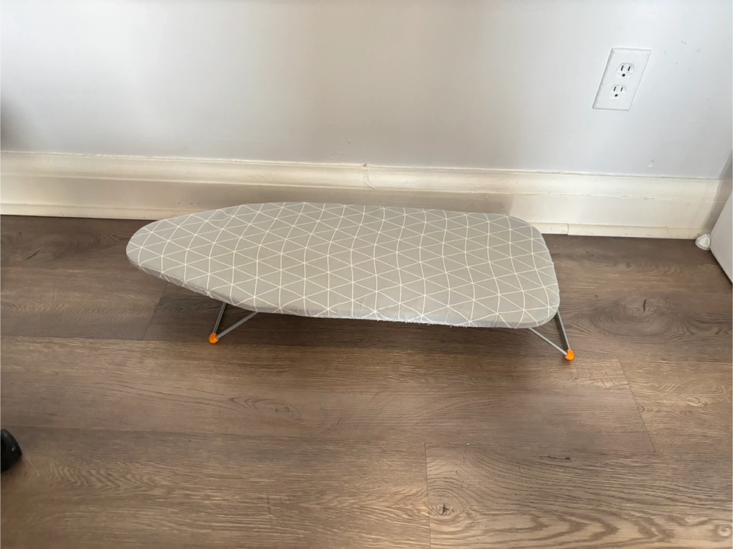 Selling Tabletop Ironing Board with Folding Legs, Small Ironing Board with Thick Cotton Cover, Portable Mini Iron Board for Sewing, Craft Room, Household, Dorm, Table Top, 12x30. It's in great condition and would be perfect for small spaces or quick ironing jobs. I bought this for $37.99 ✅Willing to meet-up halfway for purchase over $50 ✅Check out my other listing (all clothes for $5 | Baby Stuff on SALE | Home & Kitchen) ✅Pick-up and cash only
