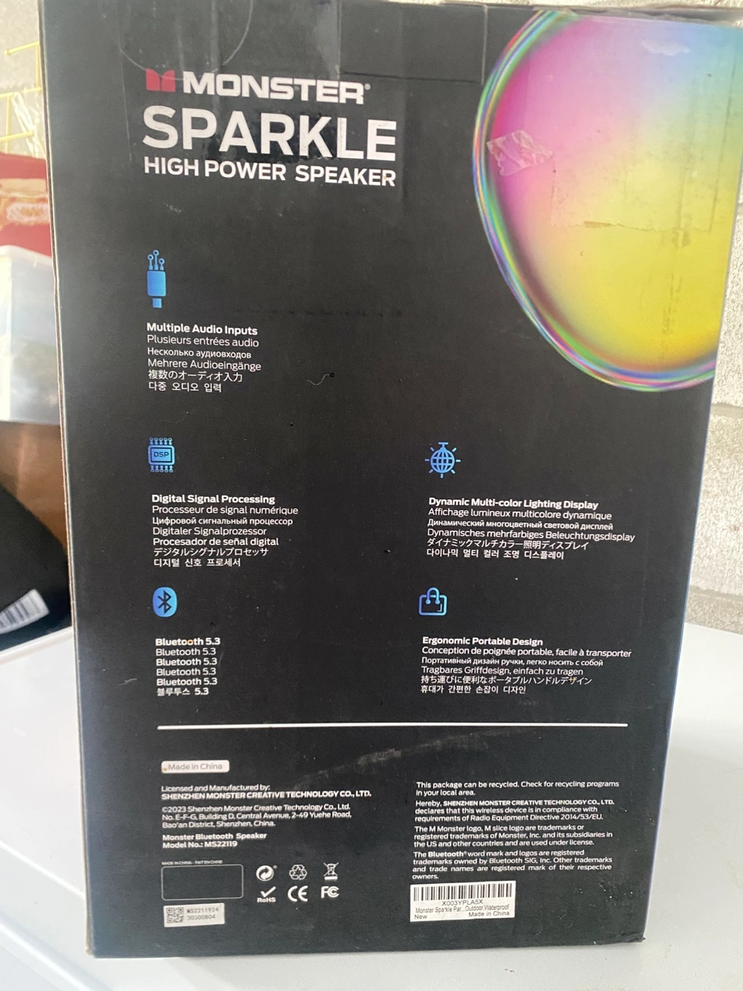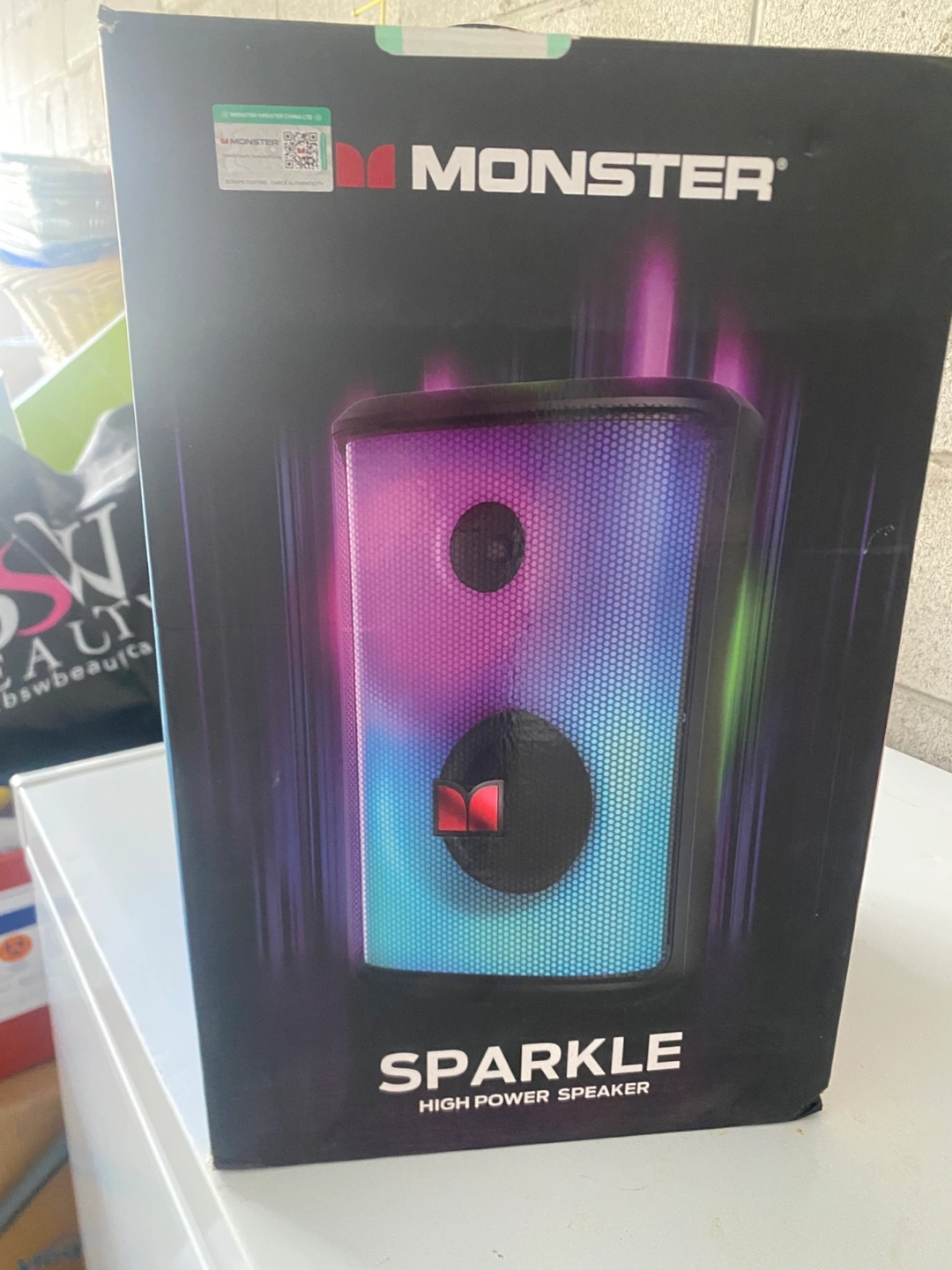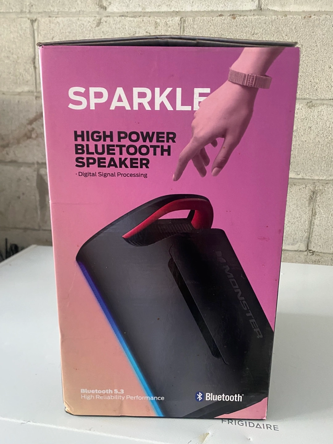 Selling a brand new Monster Sparkle high power Bluetooth speaker, still in its original box! It features digital signal processing and dynamic multi-colour lighting display. Also has multiple audio inputs. Ergonomic portable design! Bluetooth 5.3