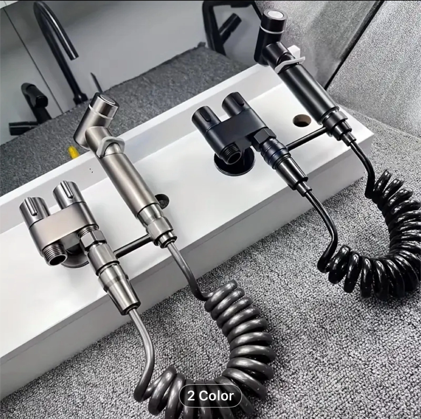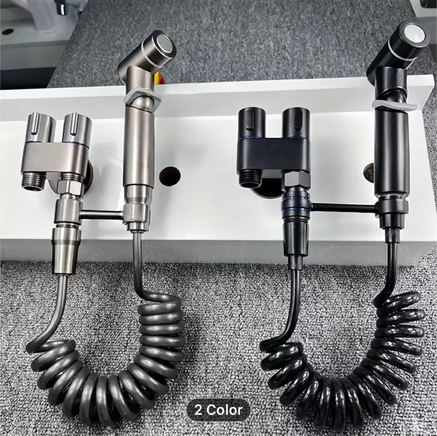4pcs/1 Set Handheld Bathroom Equipment Kit, Wall Mounted 2-In-1 Corner Valve Kit, Metal Spray Gun, Telescopic Hose And Bracket, Suitable for Washing Machines, Bathrooms, Rvs, Toilet Companion Set
