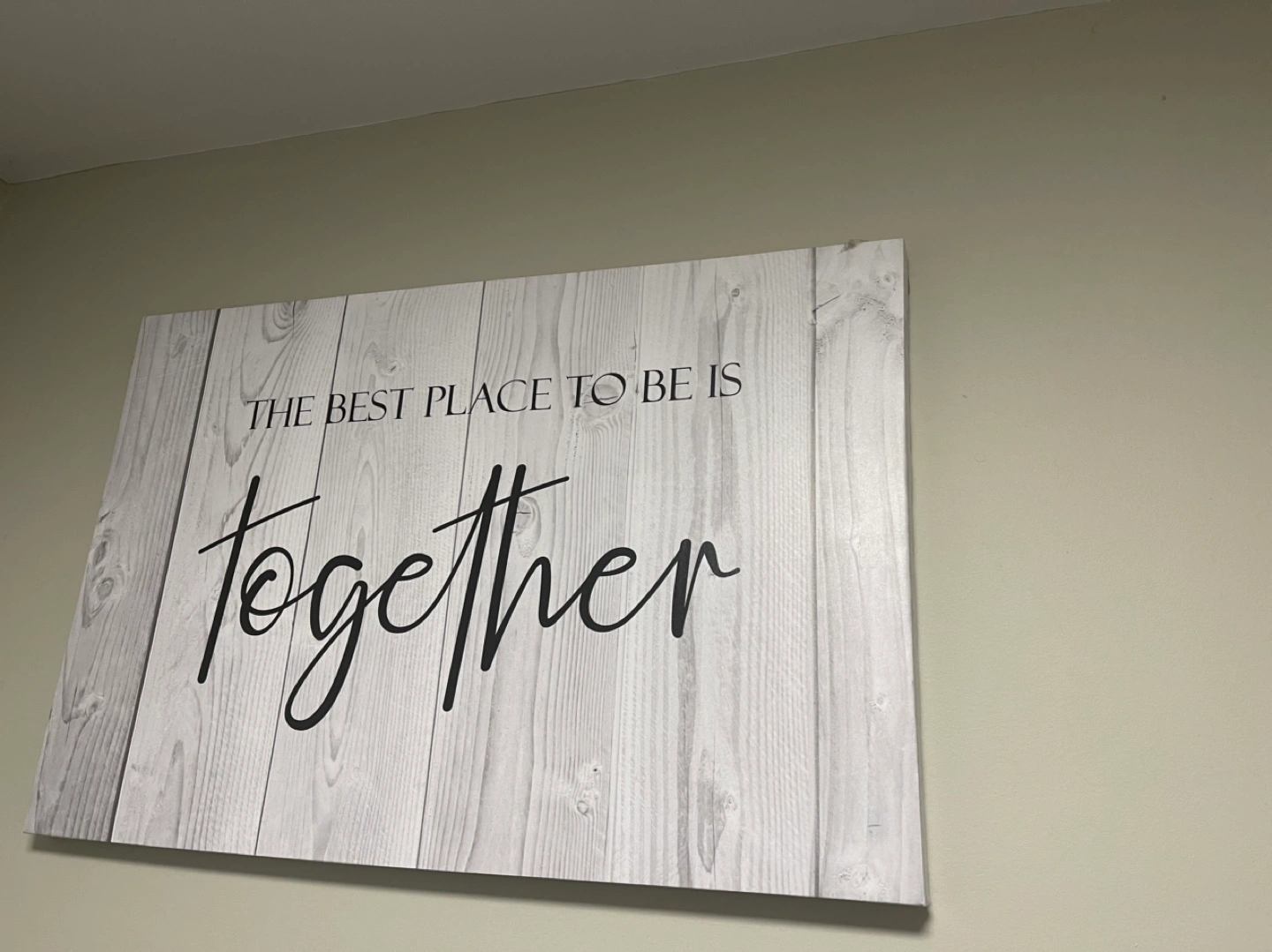 Wall art that says "The best place to be is together" on a faux wood background. Perfect for adding a cozy touch to any room