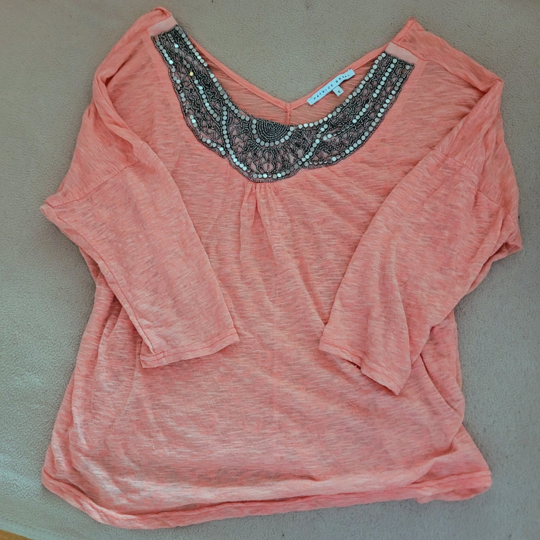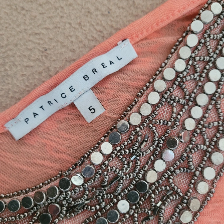 I'm giving away a Patrice Breal top in size 5. It's a lovely peach colour with beaded detailing around the neckline. Perfect for adding a touch of sparkle to your outfit!