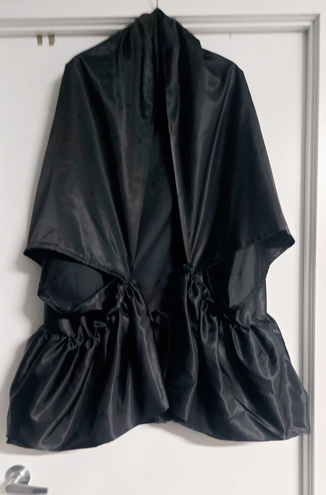 Selling a unique black ruffle cape ! It's in great condition and adds a dramatic flair to any outfit. Perfect for layering or making a statement