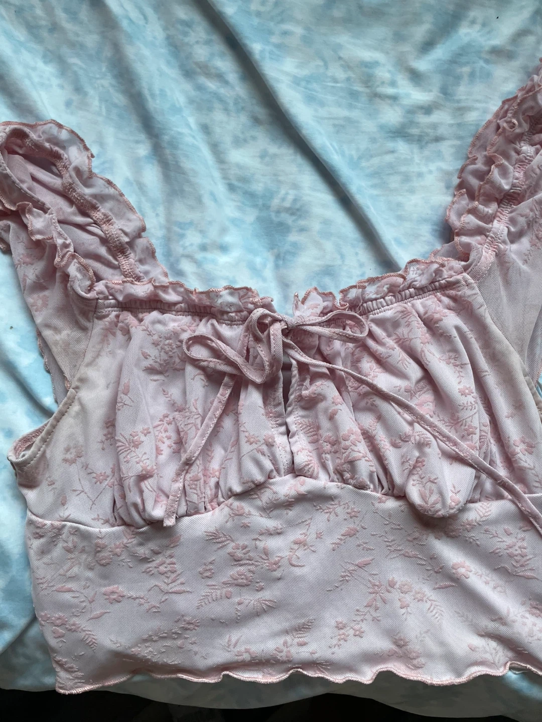 Selling a cute floral pink top! It's in great condition and perfect for warmer days lot colder with a sweater The top features a delicate floral pattern and a flattering fit. It would look great dressed up or down