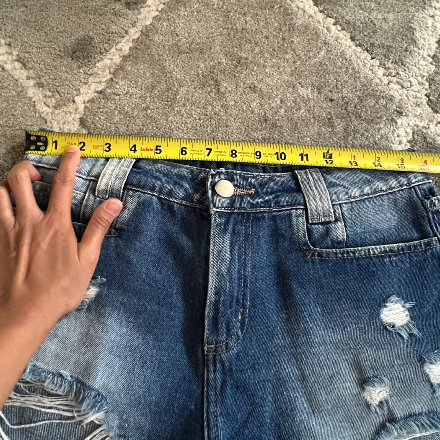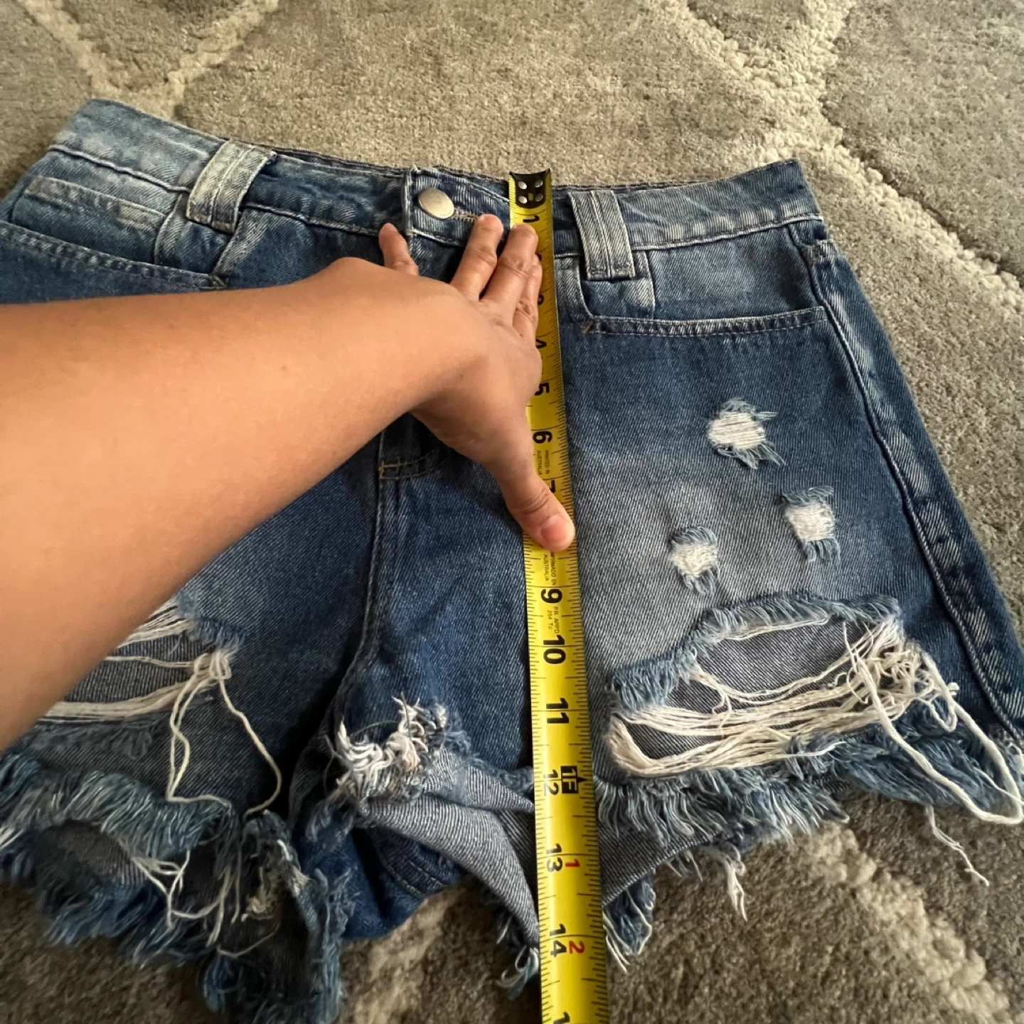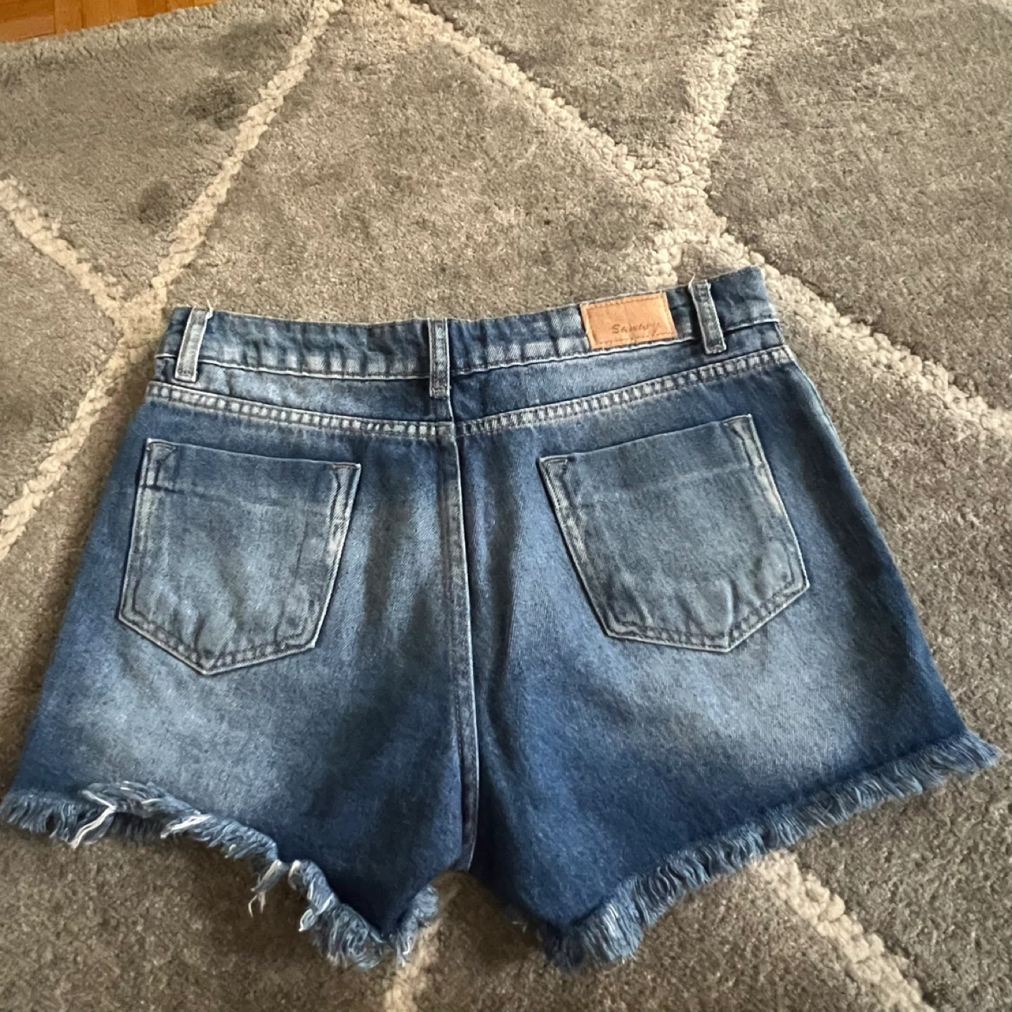 Selling a pair of Sawary denim shorts. They are in good condition and feature a stylish, distressed design. Perfect for a casual summer look!