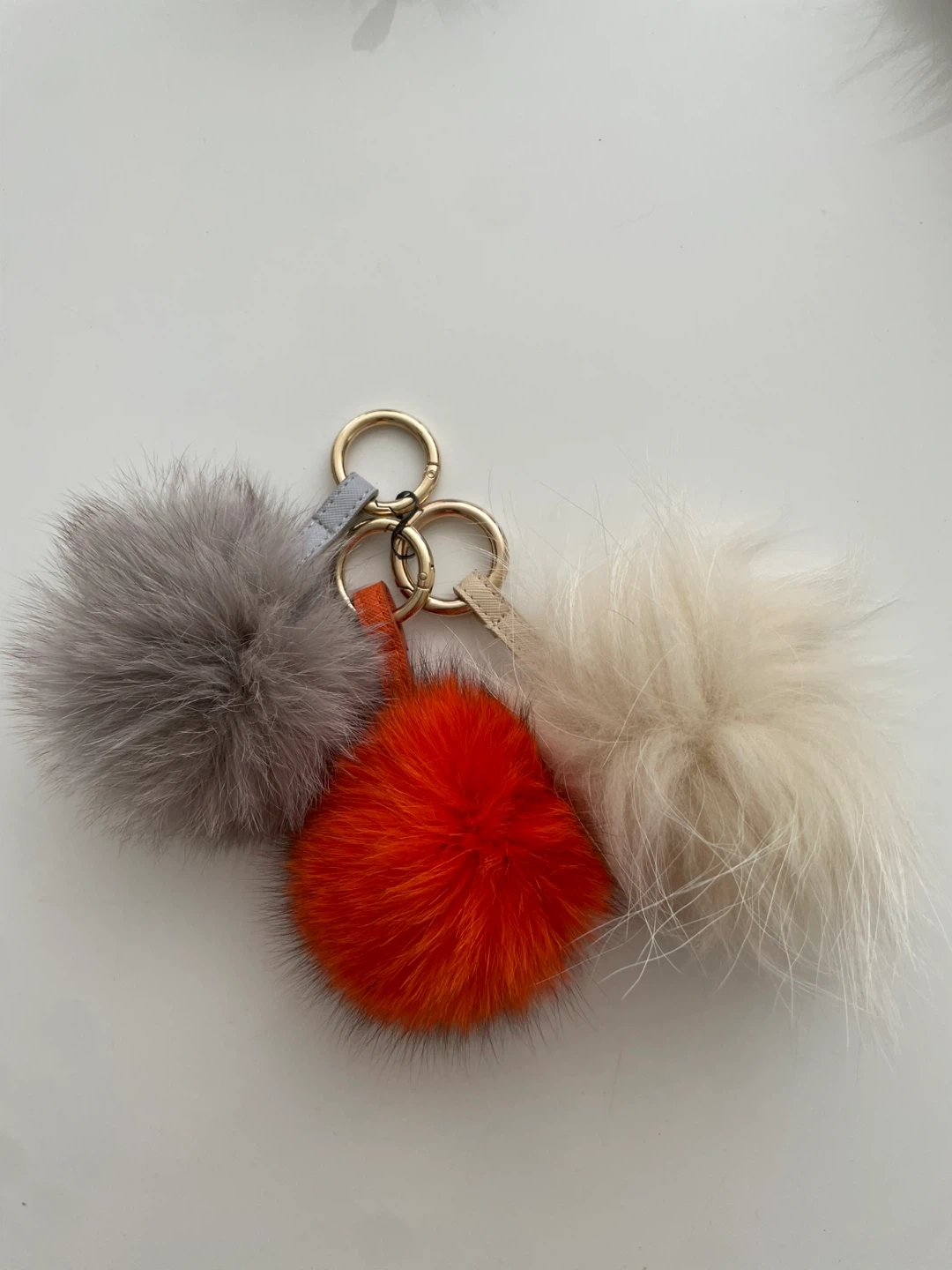 Selling a set of adorable fur pom pom keychains! There's a grey one, a vibrant orange one, and a soft white one. Perfect for adding a bit of fun to your keys or bags. No substitutions. Not faux fur. Must take all.