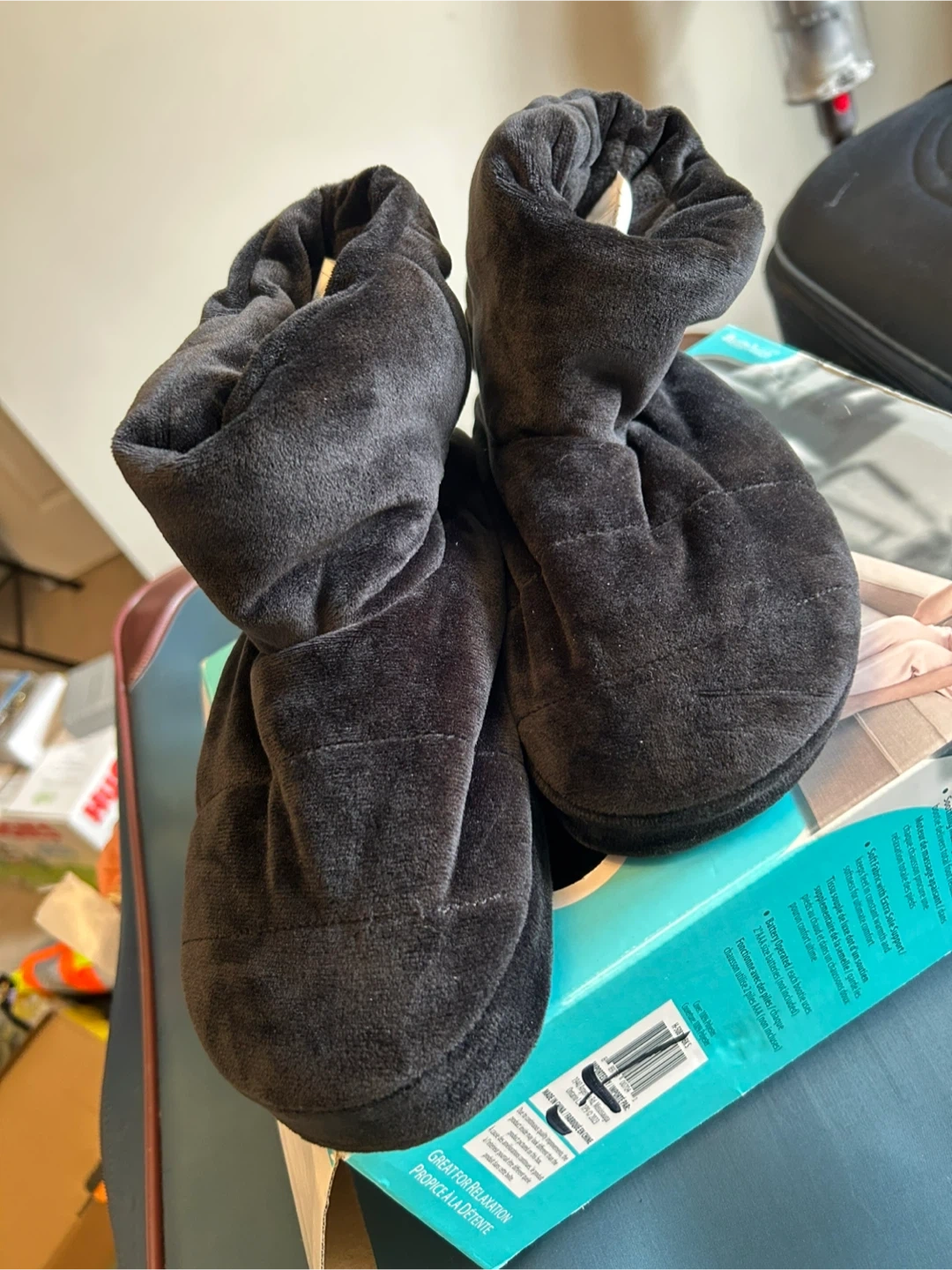 Selling a pair of HealthTouch memory foam massaging booties! They are a women's size small (6-8). These booties are designed to provide comfort and relaxation with their memory foam and massaging features. Requires 4 AAA batteries (not included).