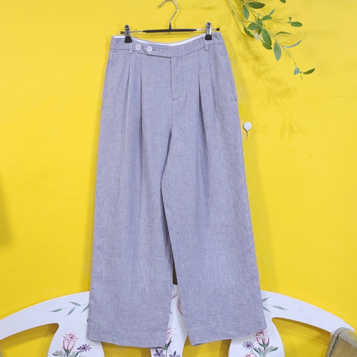 📌 Description: A pair of premium linen trousers by Human Woman, a Japanese brand known for timeless and minimalist tailoring. These pants are crafted from 100% linen, offering a breathable and lightweight texture with a luxurious drape. Designed in a versatile high-waist, wide-leg silhouette, they’re perfect for chic everyday outfits, summer office looks, or relaxed resort styling. ✔ Material: • 100% Linen ✔ Size: Flat Measurements • Waist: 35 cm (13.8”) • Rise: 32 cm (12.6”) • Hip: 51 cm (20.1”) • Total Length: 94 cm (37”) • Tagged size: M • Recommended size: Fits closer to S for Women depending on desired fit. Please refer to detailed measurements for best fit. ✔ Features: • Japanese brand quality tailoring • Wide leg cut for a relaxed yet polished look • Double button closure with zip fly • Back pockets and belt loops • Lightweight, breathable linen ideal for warm weather 📌 Condition: • Overall in excellent vintage or secondhand condition. Due to the nature of items, there may be minor signs of wear, such as slight stains or small imperfections.