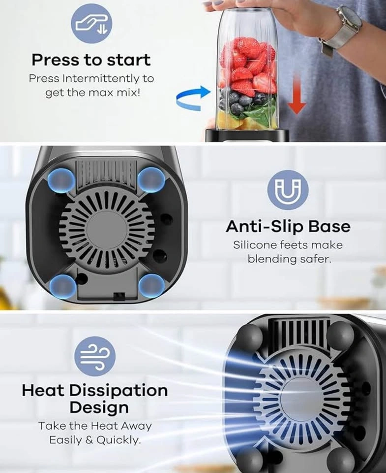 This blender for smoothies and shakes has stainless steel blades which can make smoothies, shakes, juices, frozen drinks in seconds and extract nutrients from fruits and vegetables and make a ultra smooth result.