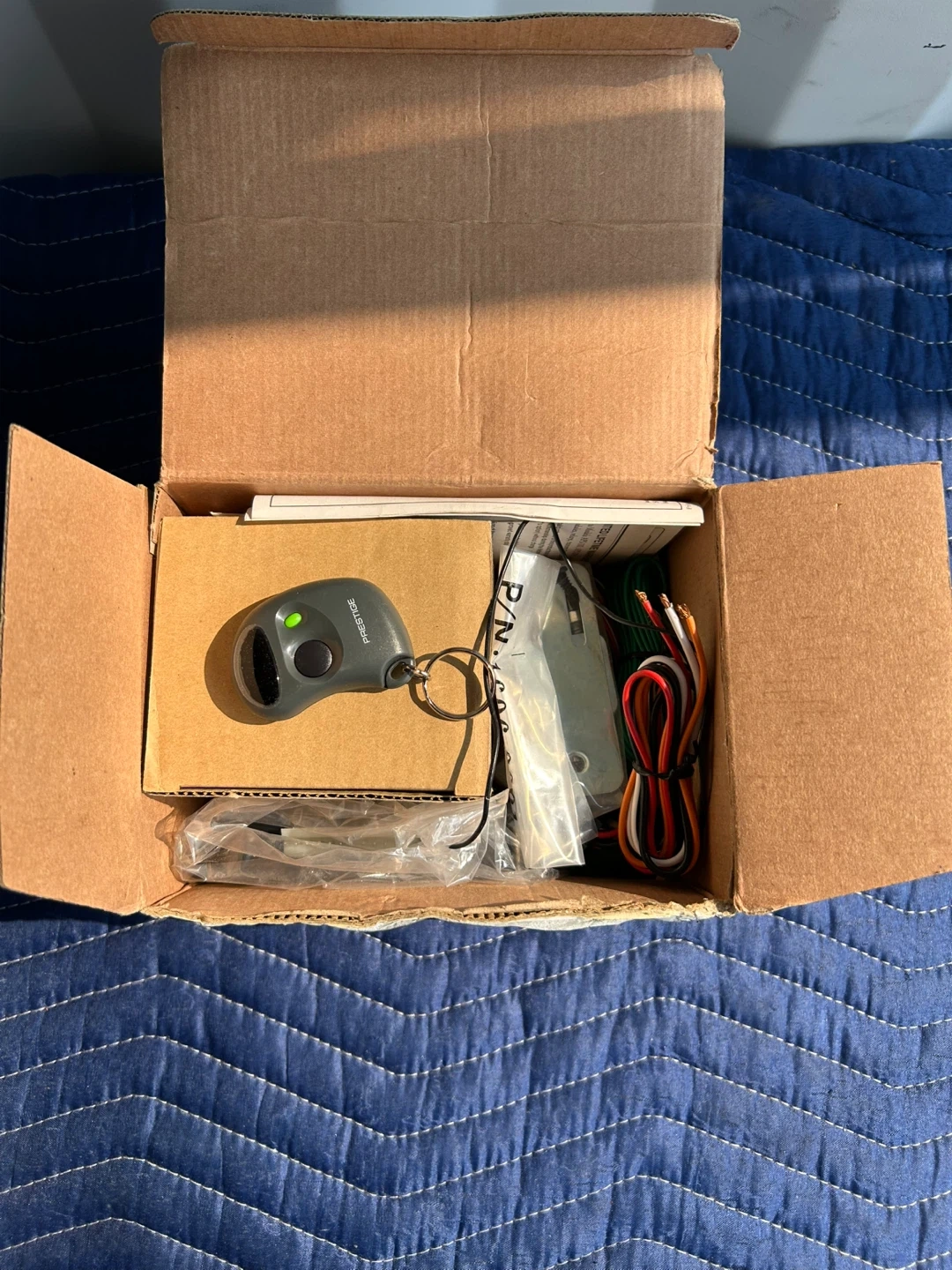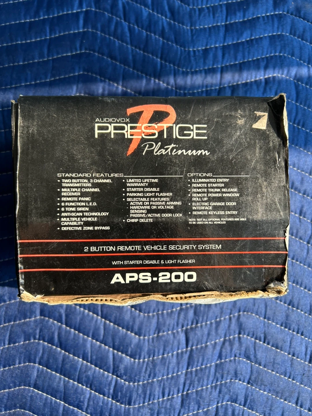 Selling a brand new Platinum APS-200 2-button remote vehicle security system. It comes with the starter disable and light flasher. The box includes the receiver, remote, and wiring.