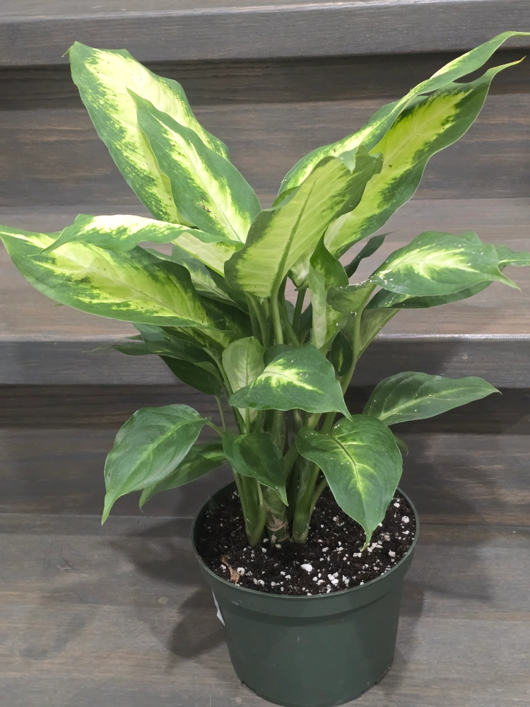 Selling a healthy Dieffenbachia plant in a green pot! It's a beautiful plant with green and yellow leaves that will add a touch of nature to your home. The plant is well-established and ready to thrive in its new environment