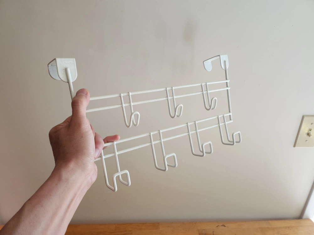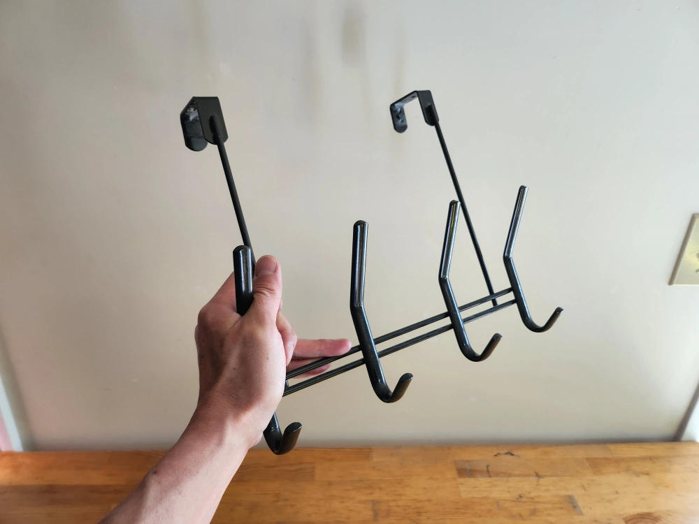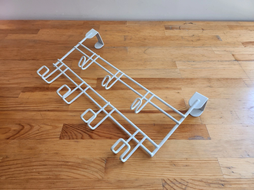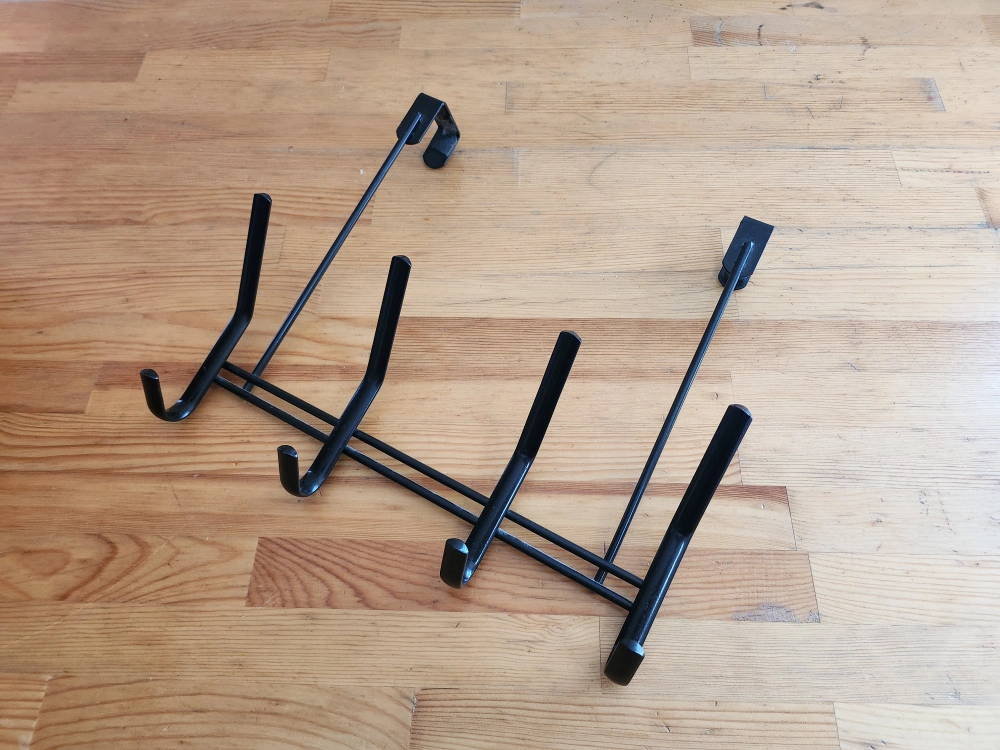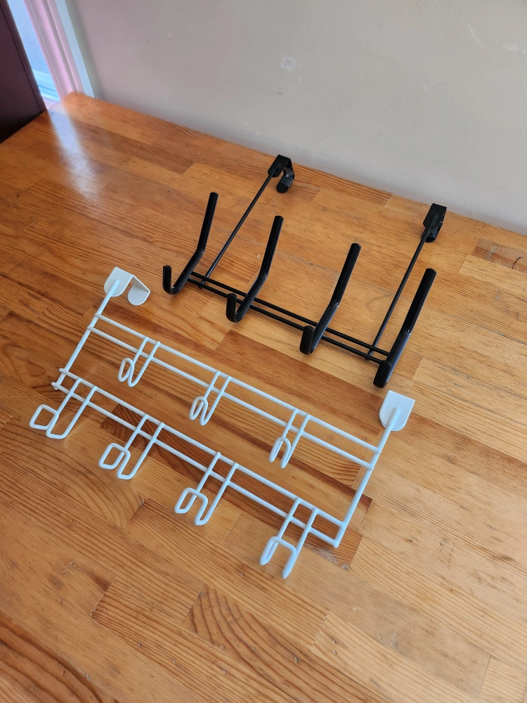 Over-the-door hooks available, one in black and one in white. Great for adding extra hanging space in your closet or bathroom. ($5 each or $8 for both)