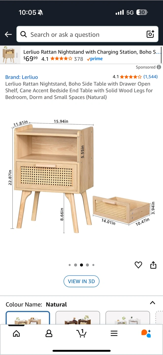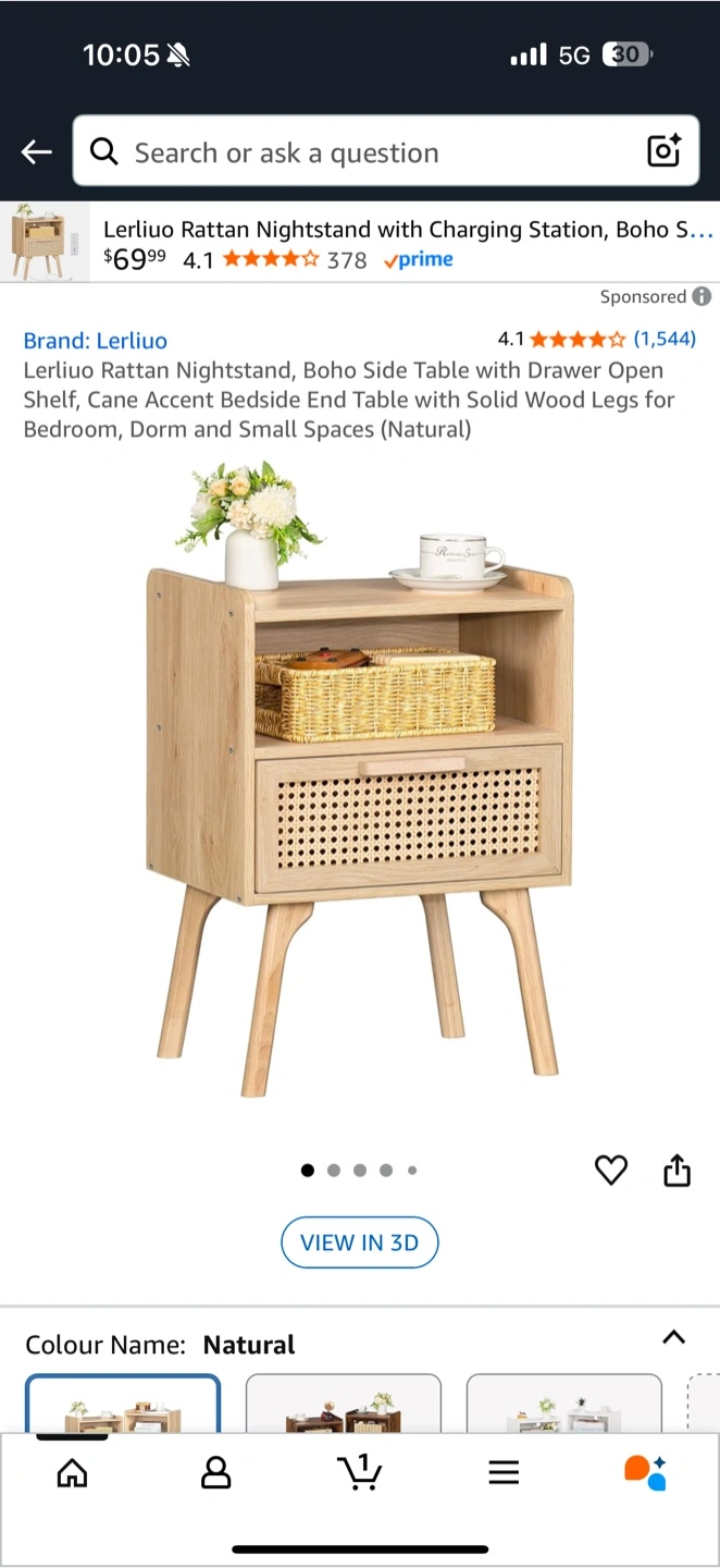 Selling a Lerliuo rattan nightstand! It's a boho side table with a drawer and open shelf. Features cane accent bedside and solid wood legs. Great for the bedroom, dorm, or small spaces. Originally bought for $69.99